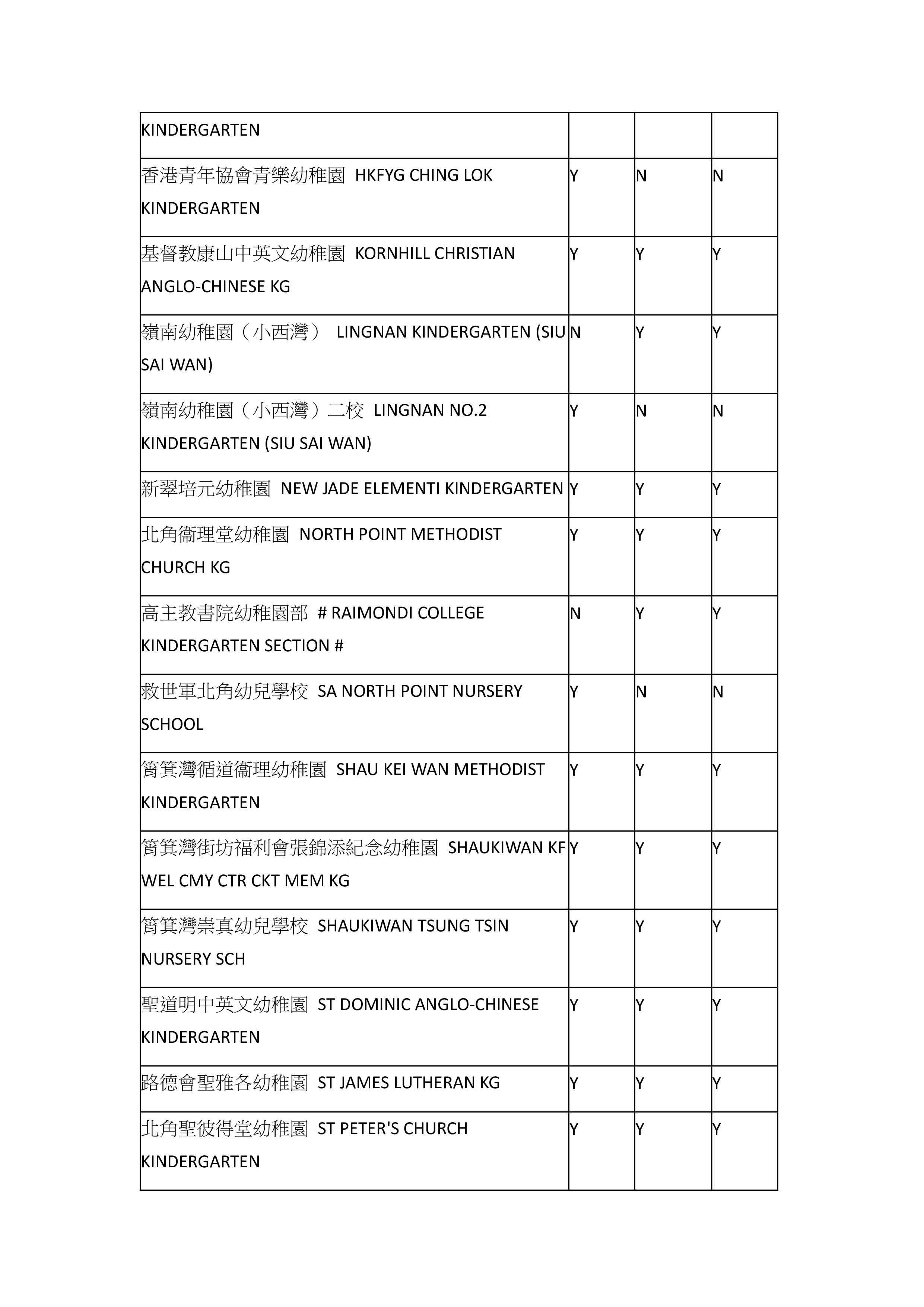 如學校名稱旁加上#號,即表示該校沒有參加幼稚園教育計劃。