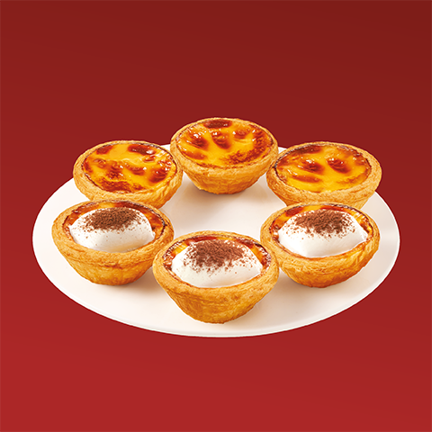 意式芝士蛋糕葡撻將流心意式芝士蛋糕(Tiramisu)醬注入葡撻,搭配經典酥脆葡撻皮,及蛋味香濃的蛋醬相輔相成,層次分明的口感令人眼前一亮!葡撻面上更放置整顆已烤焗的棉花糖,帶來如雲朵般輕盈的軟糯口感,面層更灑上一層朱古力粉,還原意式芝士蛋糕的感覺。