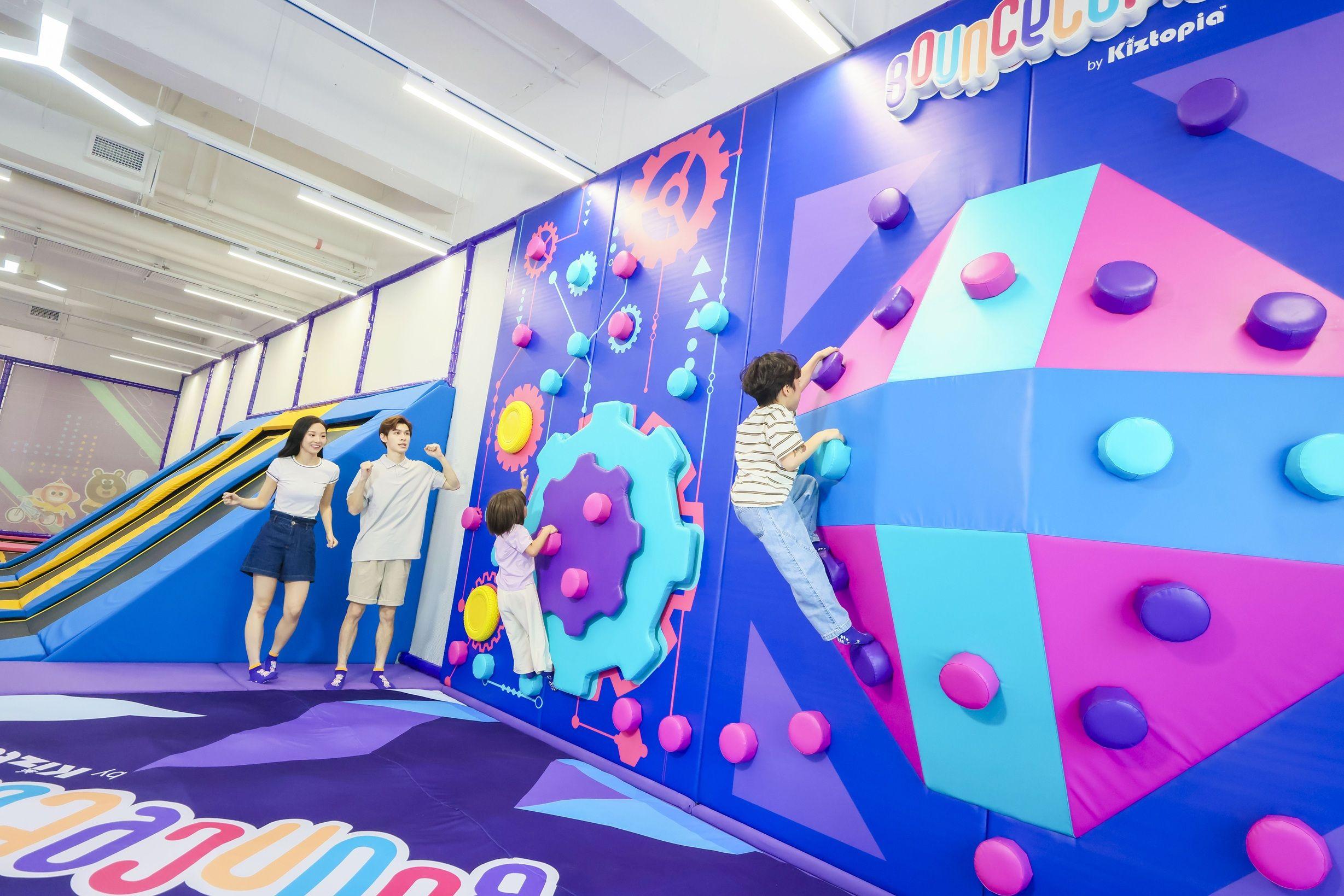 Bouncetopia早前進駐啟德AIRSIDE後,深受家長和小朋友的歡迎。品牌於奧海城的分店亦即將開幕,以運動競技作靈感,為熱愛跳躍的小玩家提供新選擇。場內設14個「肌肉 Fun 練站」。當中最受小朋友歡迎必屬以26個彈床打造的「活力彈跳地帶」。小朋友可挑戰「投球彈跳大亂鬥」,利用彈床不斷跳高,將四散的小球投進目標,極度考驗他們的手眼協調。場內更設特製斜面彈床,玩家可瞬間化身成小太空人,自由翻滾和彈跳,挑戰地心引力。除了彈床外,攀登牆亦是小朋友另一最愛設施。巨型攀登牆設不同尺寸把手,小朋友要手腳並用攀上高峰,考驗他們的肌肉力量與攀爬技巧。