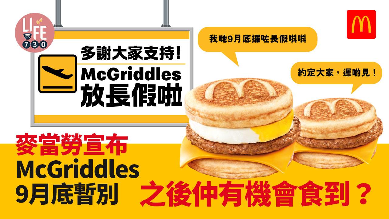 McGriddles自7月底推出於香港登場後,隨即捲起搶購熱潮,開售當日不少分店等候時間更長達一小時,可謂人人都爭住食。不過麥當勞今日就宣布香港全線分店將於9月底陸續售罄McGriddles,想食就要把握機會,但麥當勞亦表示大家毋須擔心,McGriddles定會與各位再會!
