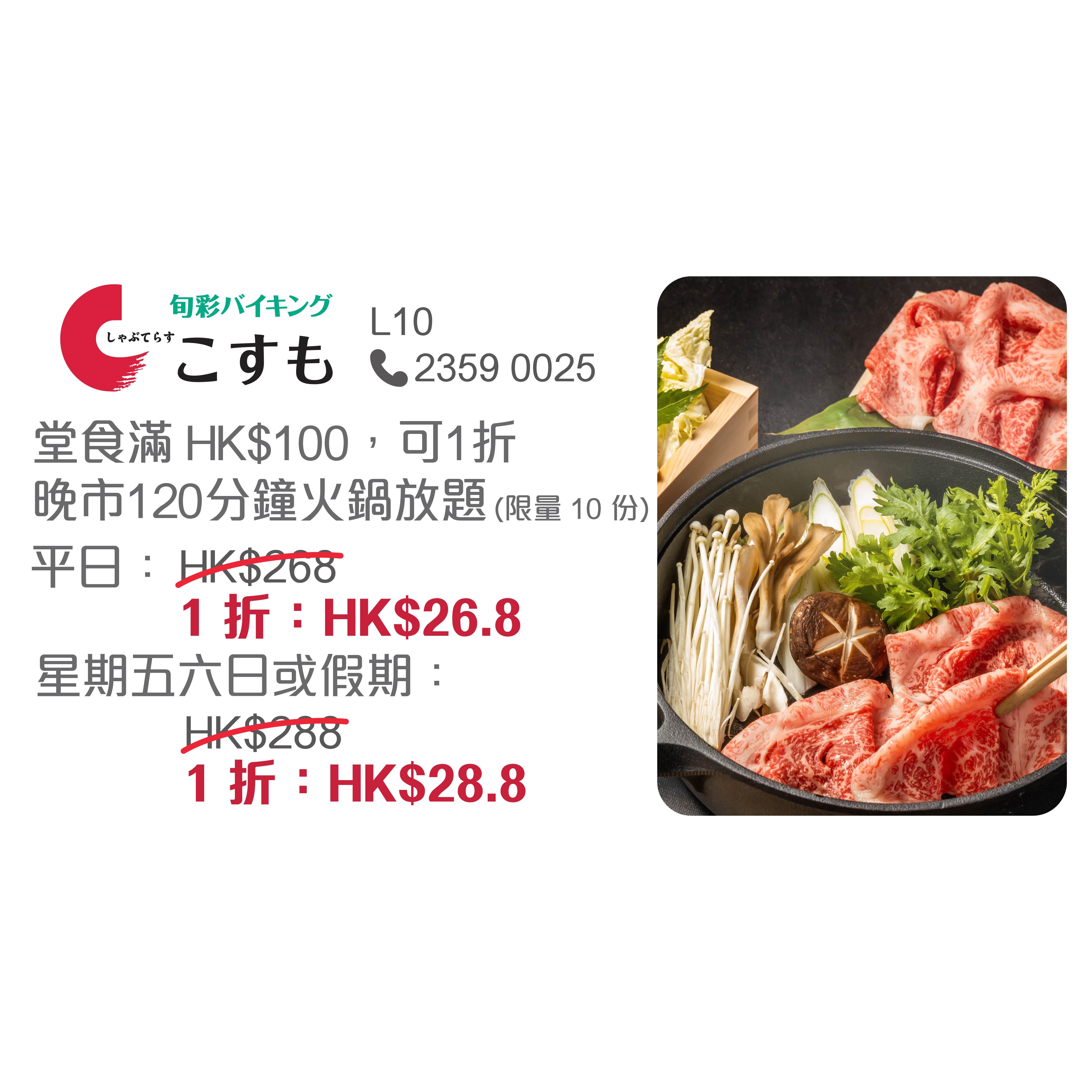消費滿$100即贈送總值$600的家品現金券;消費金額達$150至$29可額外獲得$1美食現金券,適用於全日餐飲;消費滿$300或以上更可獲贈$30晚市美食現金券。