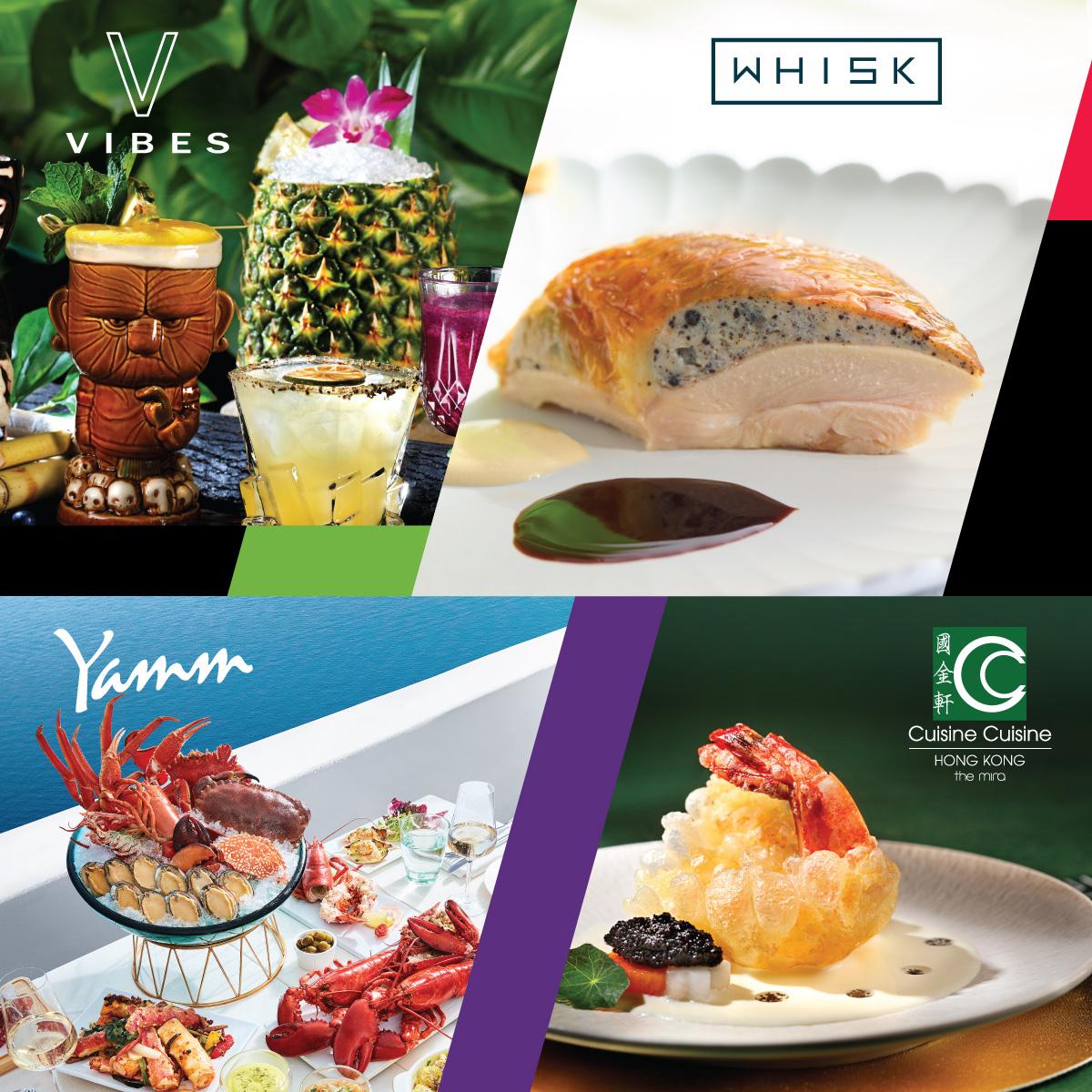 美麗華集團旗下的餐廳及水療中心亦有參與是次驚喜優惠,超過50款產品提供低至38 折及「買一送一」優惠!當中包括38 折摩登泰菜 Mue Mue「泰式青咖喱和牛面頰軟殼蟹2人午餐」;45折享用米芝蓮推介粵菜食府翠亨邨「花膠鮑魚鵝掌燕窩鴛鴦珍饌2人套餐」;精選推介大量「買一送一」餐飲優惠,包括屢獲殊榮的自助餐殿堂 Yamm「亞洲主題自助午餐任食人氣生蠔片皮鴨」和「鮑魚花膠鴨肝盛饌自助晚餐」、黑珍珠一鑽新貴唐述「黑珍珠嚐味花膠海參龍蝦蟶子皇套餐」、摩登泰菜 Mue Mue 「泰皇龍蝦海鮮冬蔭功套餐」及中菜餐廳大宅八道菜花膠海參蟹黃虎蝦商務午巿套餐等。