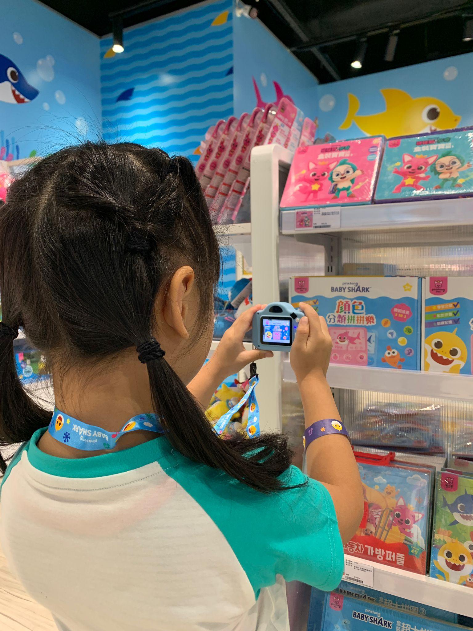 最吸引記者的是,Pinkfong Baby Shark旗艦店居然有售兒童相機。小朋友不但能用相機記錄他們的生活,更加能讓一眾家長一窺小朋友的世界。而小巧輕便的機身及吊繩上都印有可愛的Baby Shark公仔,絕對能吸引小朋友!
