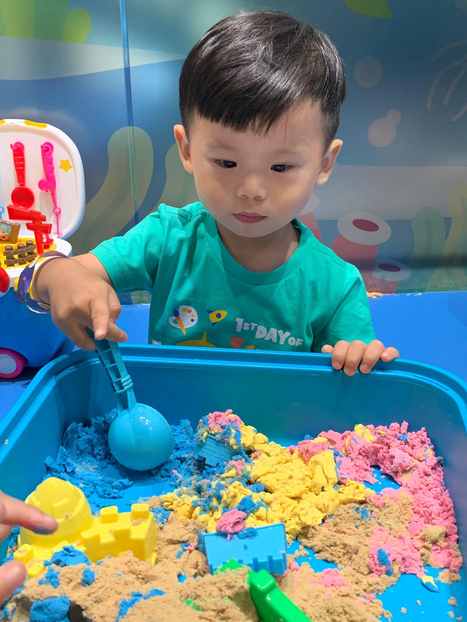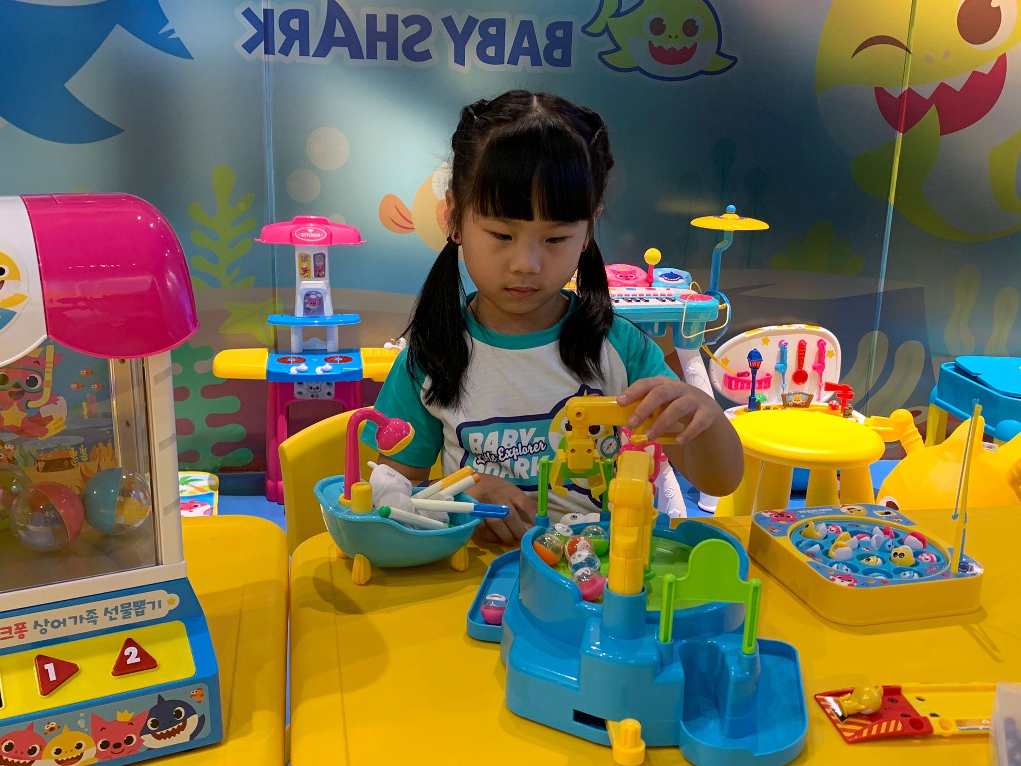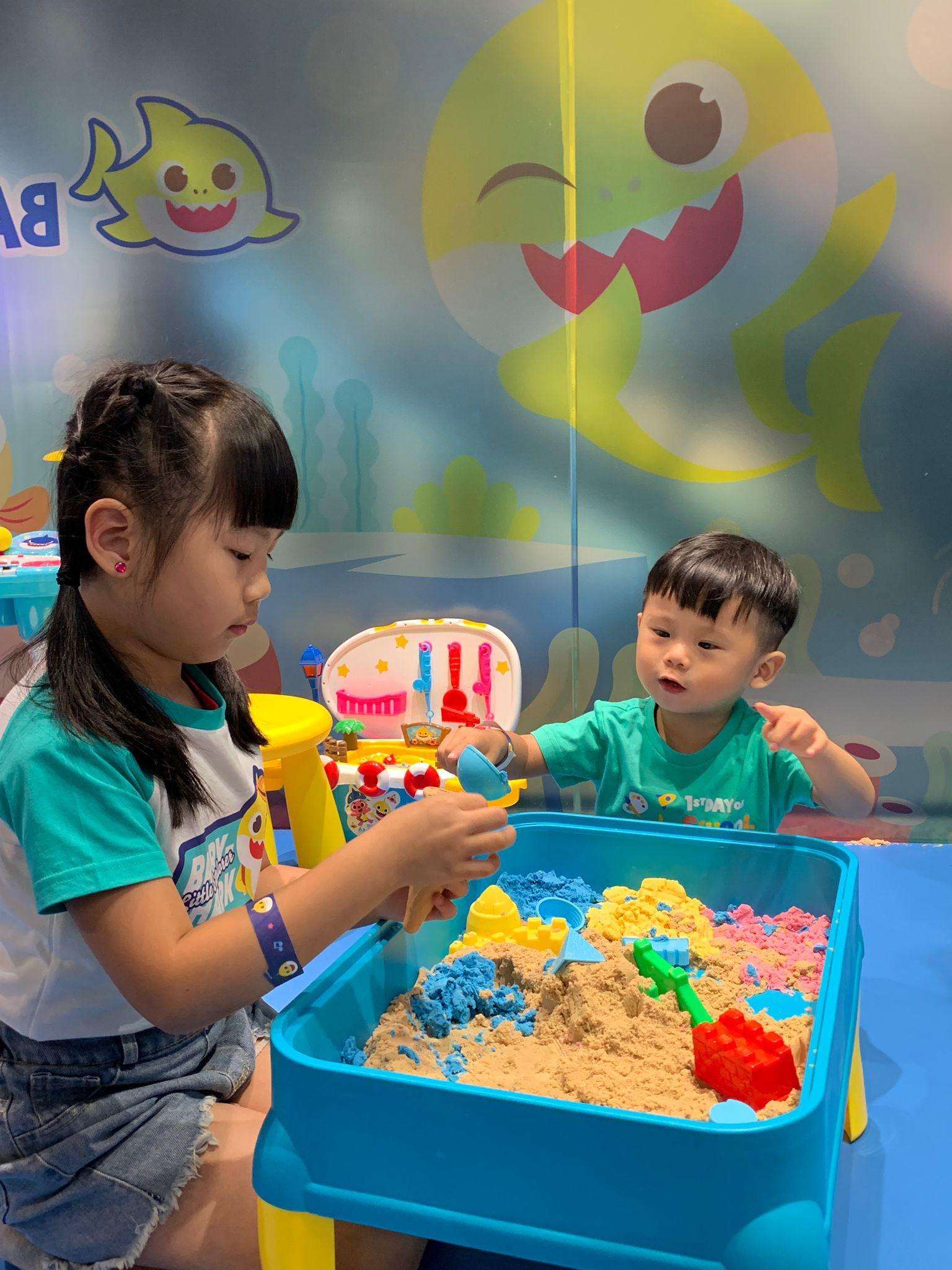 場內同時設有Baby Shark Playzone,適合1至6歲小朋友,區內擺放多種不同Pinkfong及Baby Shark玩具及圖書給小朋友閱讀及玩樂,甚至播放超人氣Baby Shark音樂,讓小朋友一邊聽歌一邊玩玩具。Playzone內的一款動力沙玩具觸感近似沙及泥膠,可訓練小朋友的小肌肉,幫助他們做到如穿珠仔及扣衫鈕等精細動作。同時,父母可教導小朋友分享及輪候玩具,是小朋友學習社交及練習小肌肉的好地方。