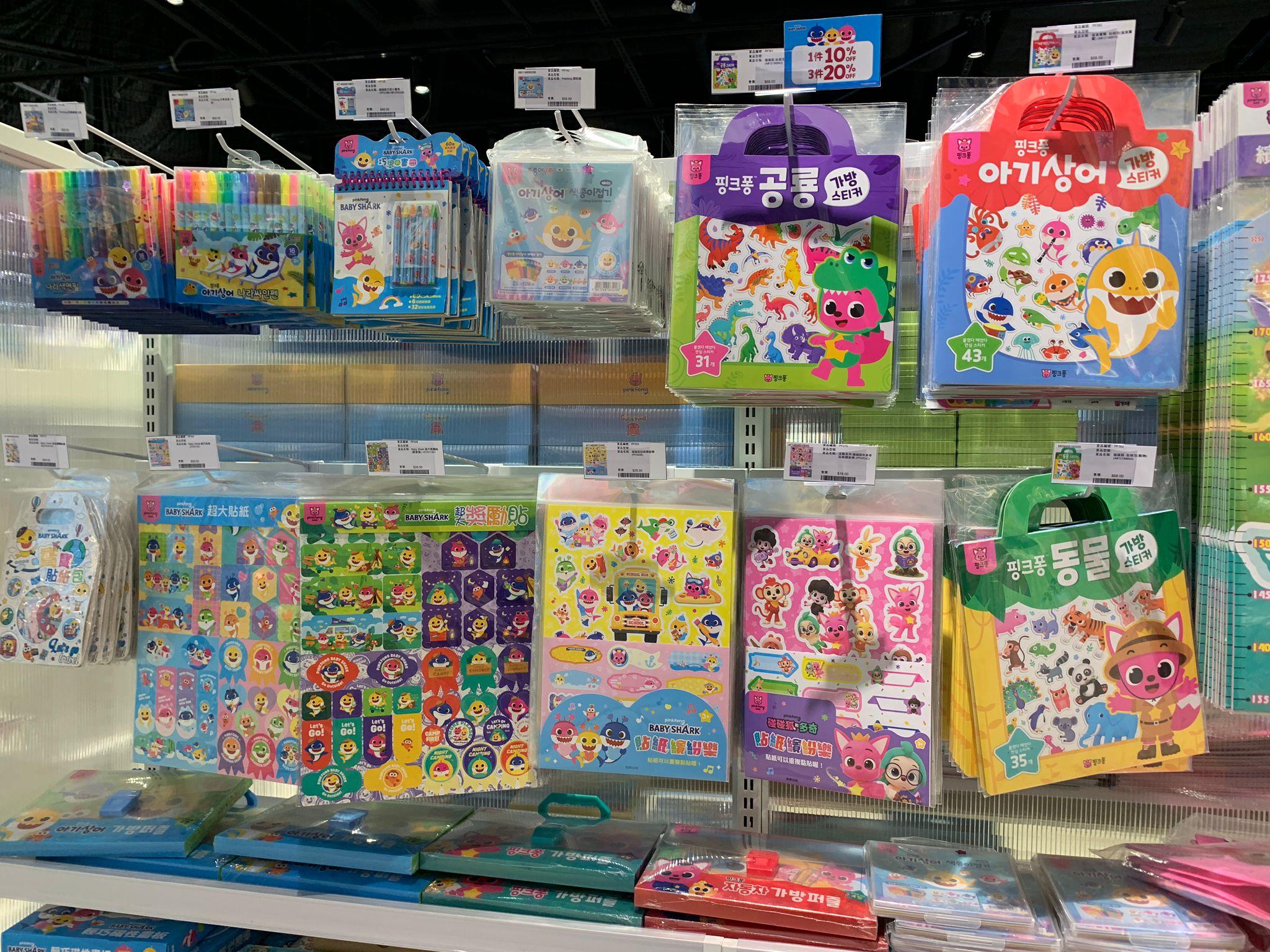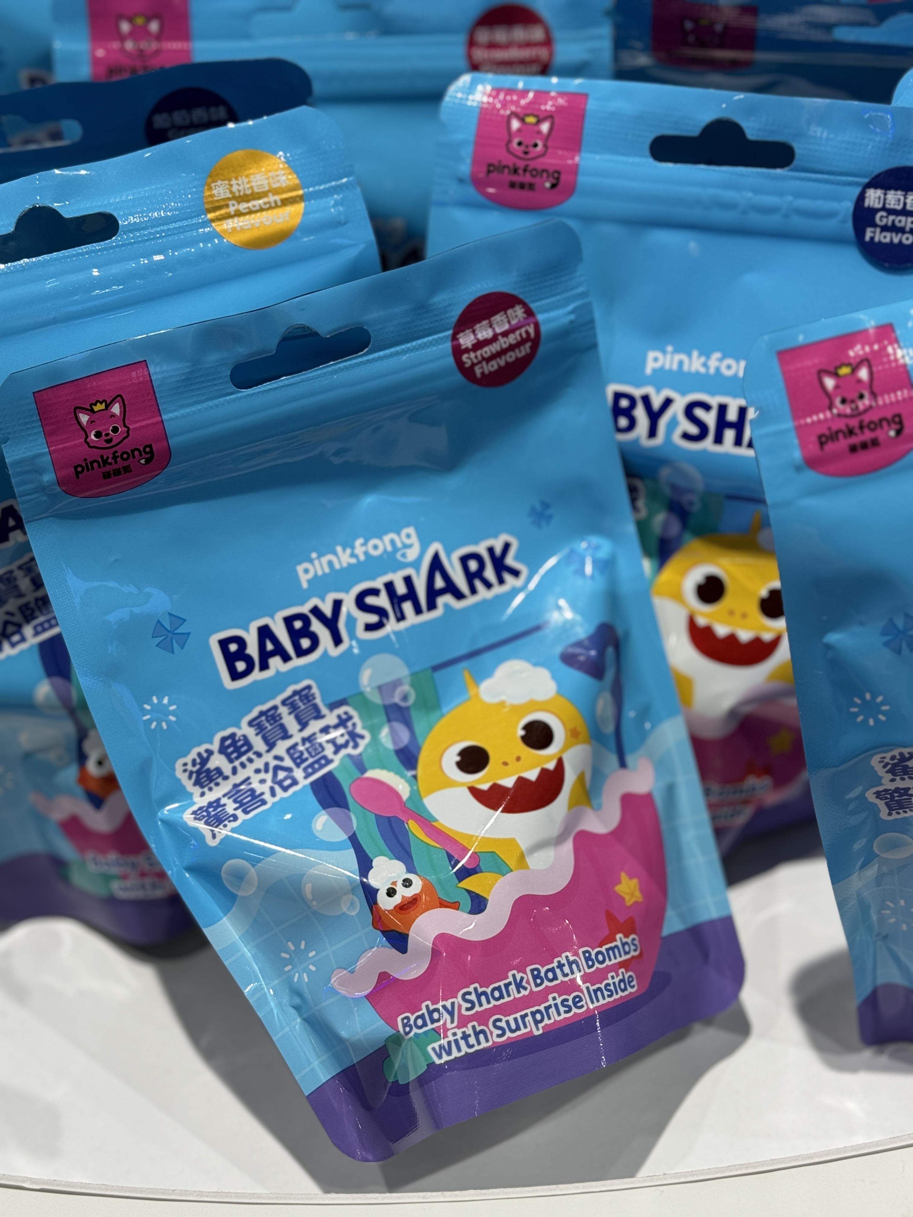 Pinkfong Baby Shark旗艦店場以海洋世界為主題,店內有600多件Pinkfong及Baby Shark的精品,涵蓋玩具、食品及衣物,數量之多屬全港少有,當中不少產品更加是港澳地區限定,例如Baby Shark彩虹寶寶麵及鯊魚寶寶驚喜浴鹽球等,連Pinkfong及Baby Shark的原創地韓國都找不到。臨近開學,不少Pinkfong及Baby Shark主題的餐具及小毛巾等產品十分適合小朋友作為上學用品。家長可帶小朋友到場挑選他們心儀的用品,增加小朋友的上學積極性。