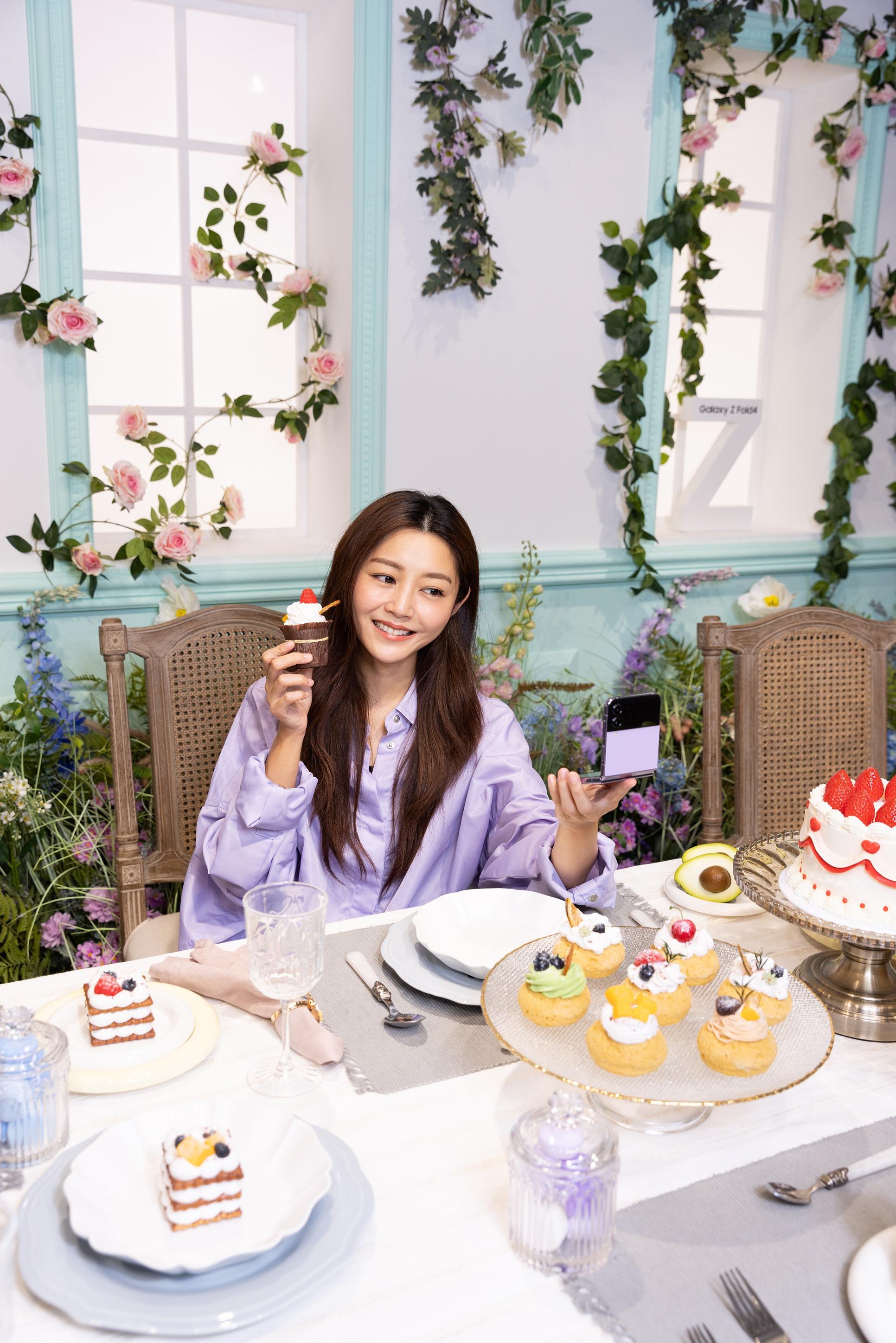 另一置於期間限定店一隅的「The Garden」把用家帶到詩情畫意的英式花園,為迎合年青一代手機食先拍攝文化,各用家除了可以在花園打卡,更可利用 Galaxy Z Flip4 專屬的 Top Down Capture 高角度俯拍摺疊攝影,在靚景襯托下以俯視角度拍下Foodie級數的IG美食照。