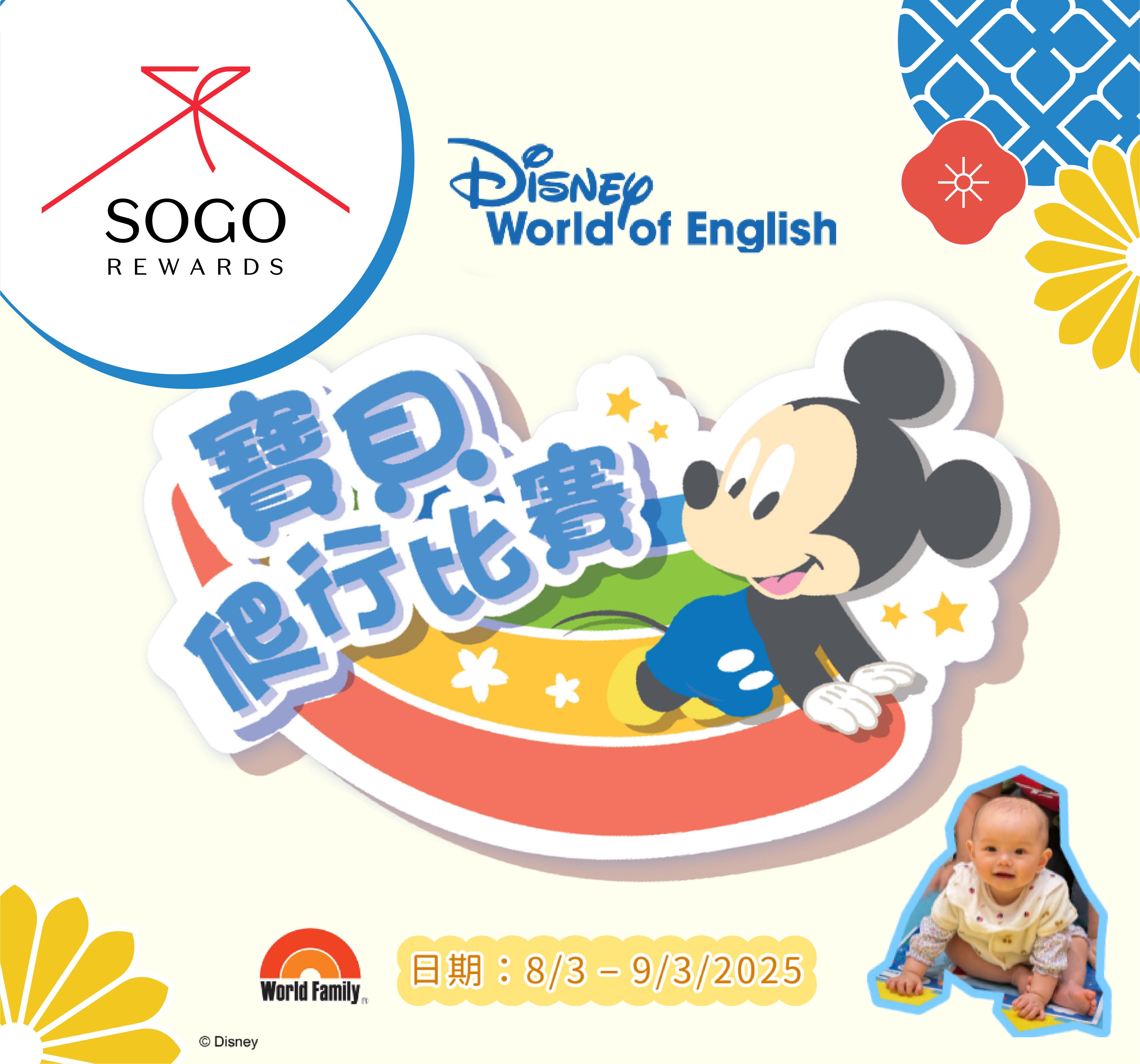 崇光「春日童嬰用品及服飾購物日」將於2月載譽歸來,今年將集結超過100個母嬰品牌,商品涵蓋服飾、哺乳用品及消毒裝備等,優惠低至4折。崇光於活動期間更與UNK及迪士尼美語世界合辦「BB爬行大賽」,所有參加者均可獲贈豐富禮品包。