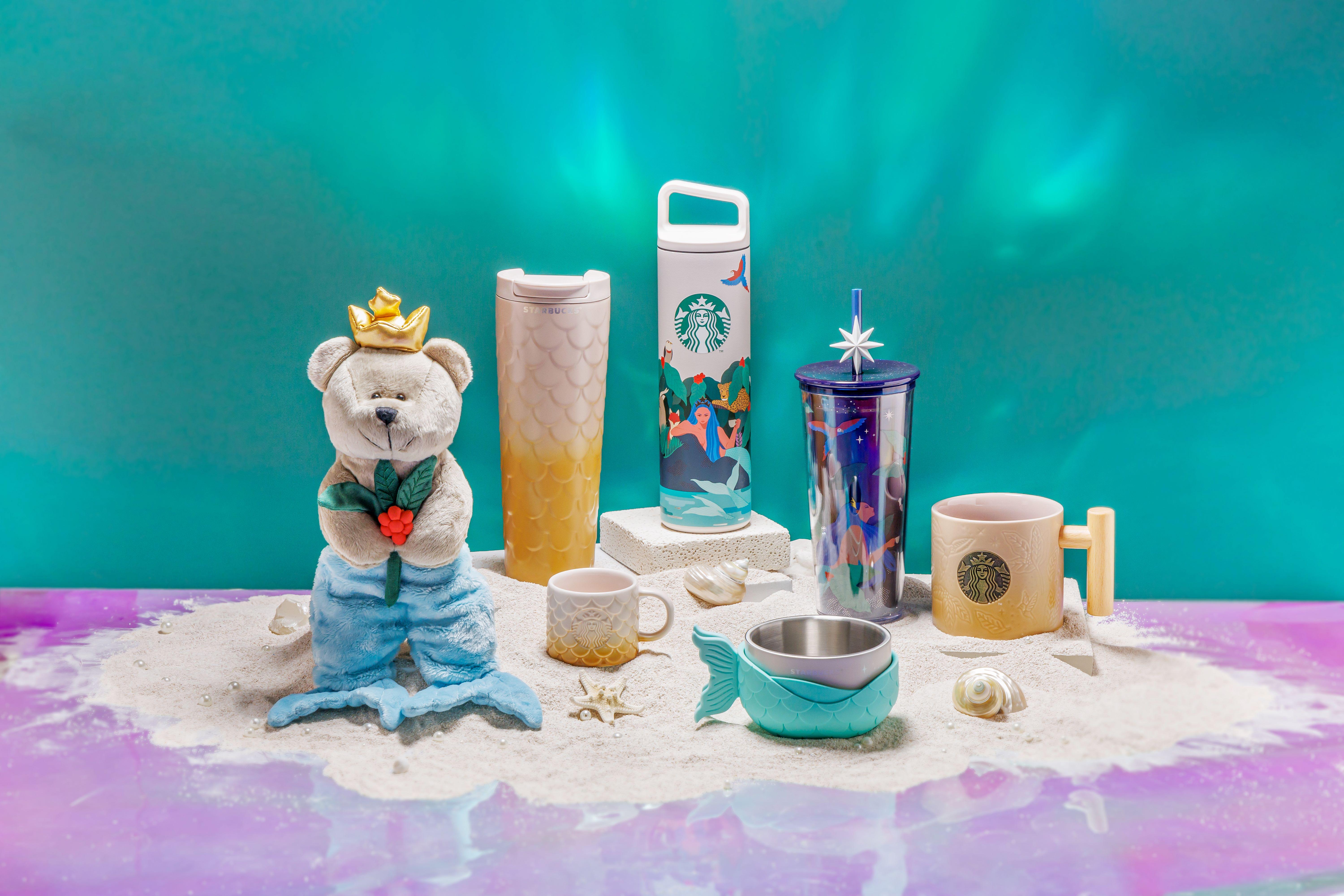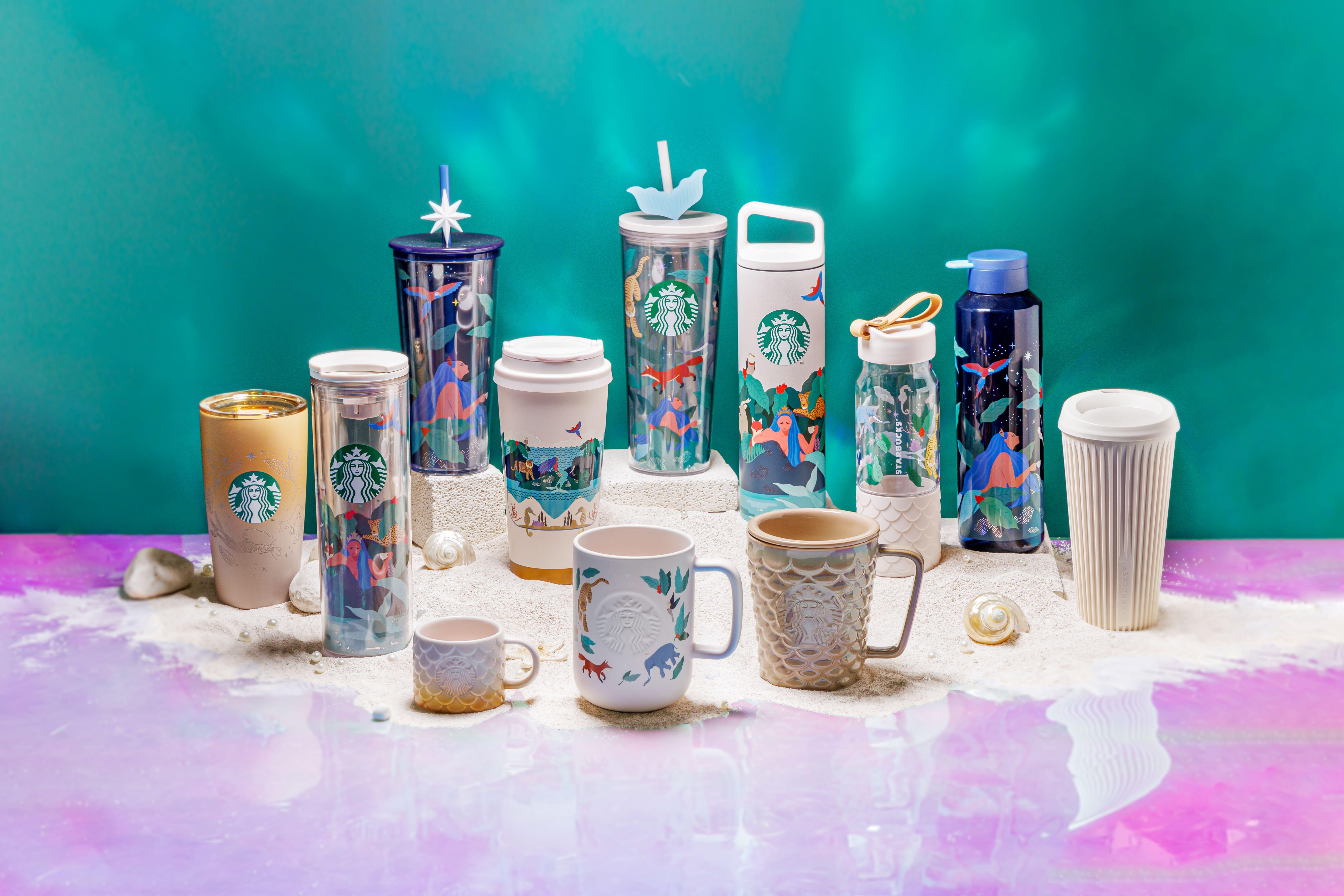 新出的「神聖島嶼守護者」商品系列合共 24 款單品,描繪了星巴克美人魚、海洋生物、狼群和其他陸地生物,在夢幻海洋中綻放出活力與華麗的迷人風采。包括隨行杯、凍杯、以及星巴克熊人魚等,Starbucks Rewards™ 會員可於 9 月 7 日優先購買。