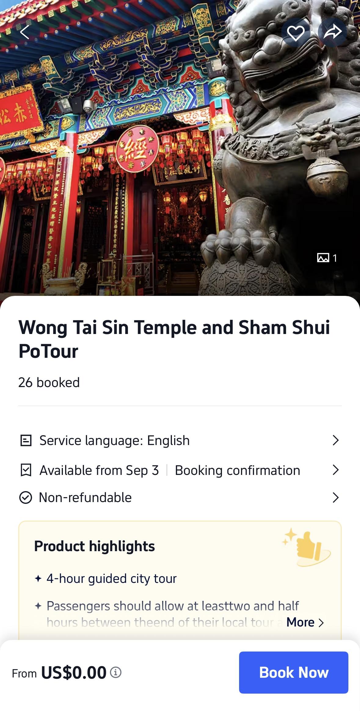 行程從香港國際機場出發,途經深水埗北河街街市,感受地道風情,並參觀具代表性的黃大仙祠。