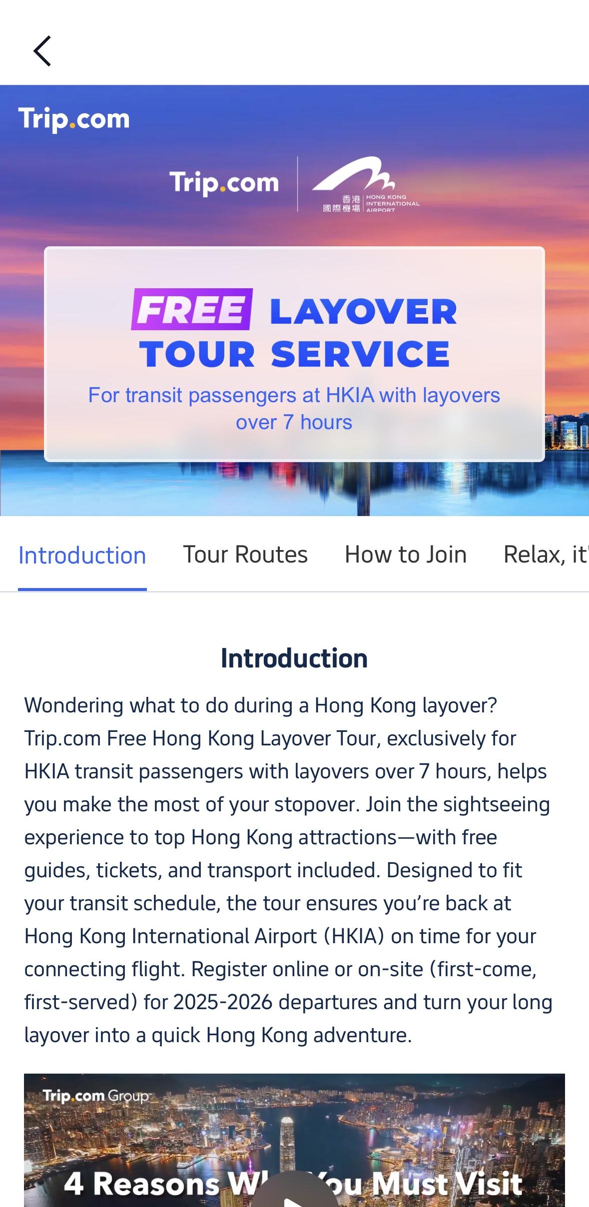 旅客可根據到達及停留時間選擇合適的遊覽路線,即日起透過Trip.com手機應用程式、官方網站預約,或於香港國際機場轉機櫃檯E134及E135或入境大堂A區的Trip.com服務櫃位(A03及A04)即場登記報名。完成入境檢查後,旅客可於Trip.com服務櫃位與導遊會合即可。