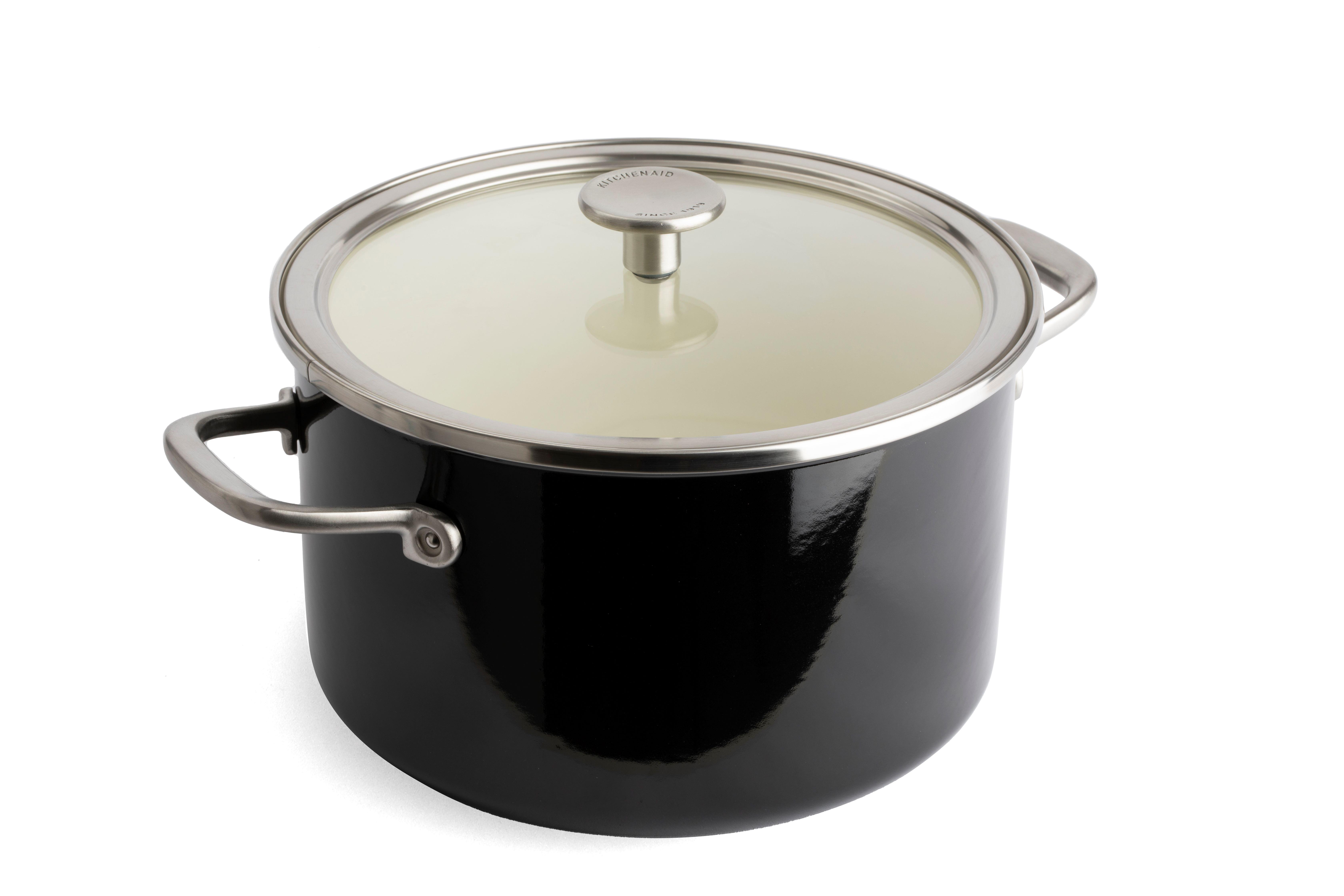 琺瑯鋼湯鍋連蓋(24厘米)黑色/奶油色