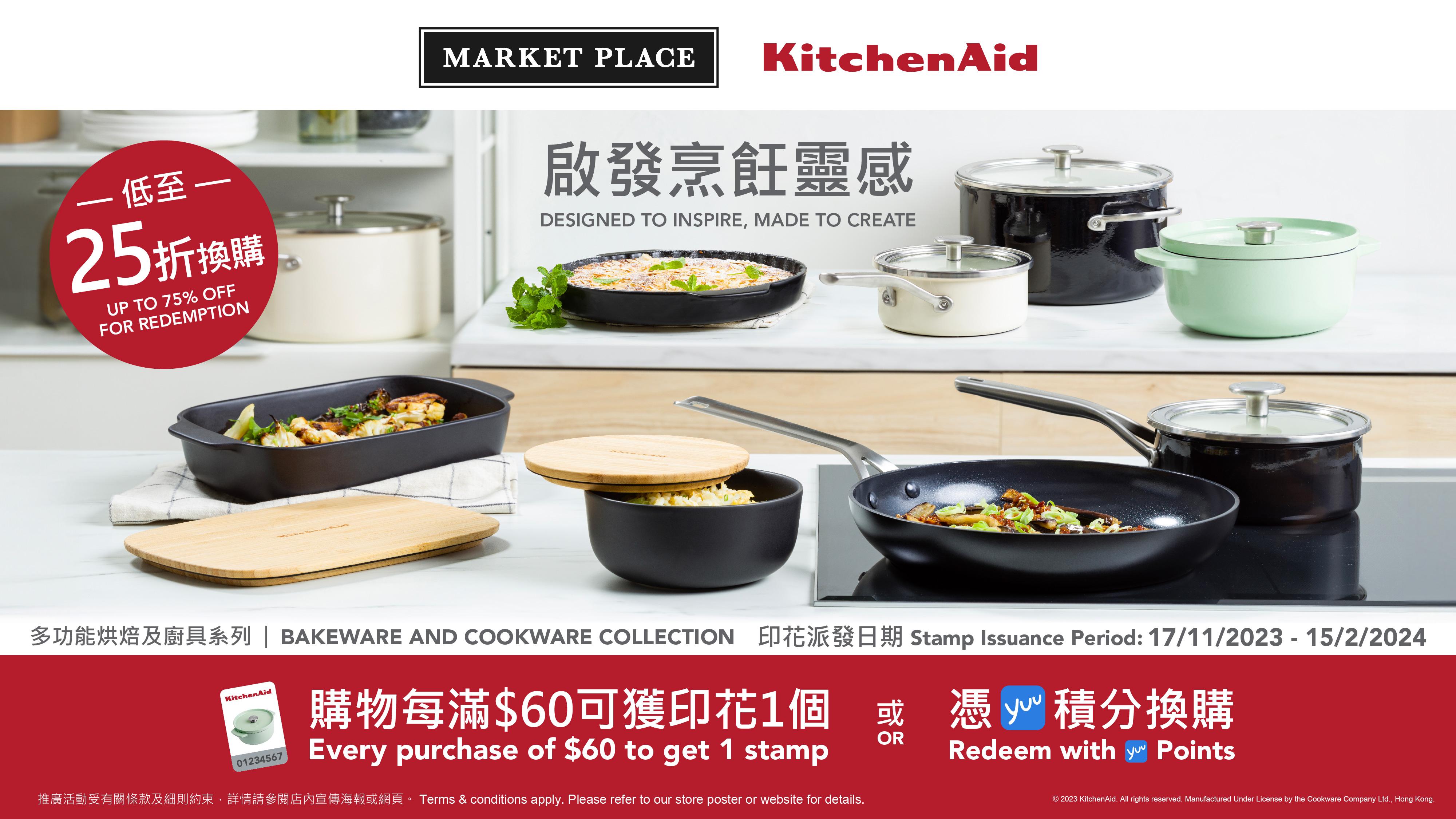 yuu積分|冬季節慶特別多,下廚的機會自然增加。要煮出美味的料理,先要有優質的廚具。Market Place由即日起至2024年2月15日期間,Market Place、Market Place by Jasons及3hreesixty特別與著名美國廚房烘焙及廚具品牌KitchenAid推出全新印花活動,顧客凡購物每滿HK$60即可獲得印花一個,集齊指定數量的印花,即可獨家免費換領或換購一系列「多功能烘焙及廚具系列」產品!而yuu會員以指定yuu積分更可免費換領指定產品,記得把握機會善用積分換領心水廚具,啟發烹飪靈感!