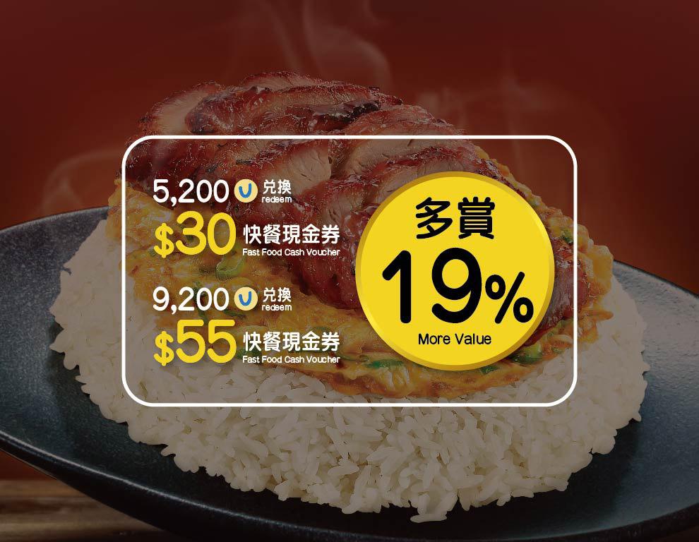 - 憑9,200積分兌換$55快餐現金券1張(美心MX/can.teen/美心Food² )