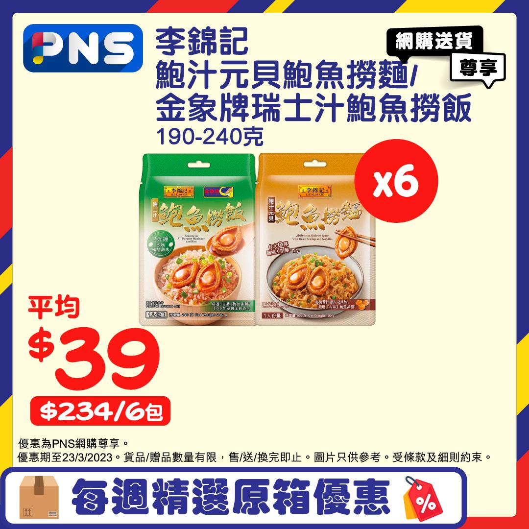 李錦記鮑汁元貝鮑魚撈麵190克/李錦記X金象牌瑞士汁鮑魚撈飯,$234/6包