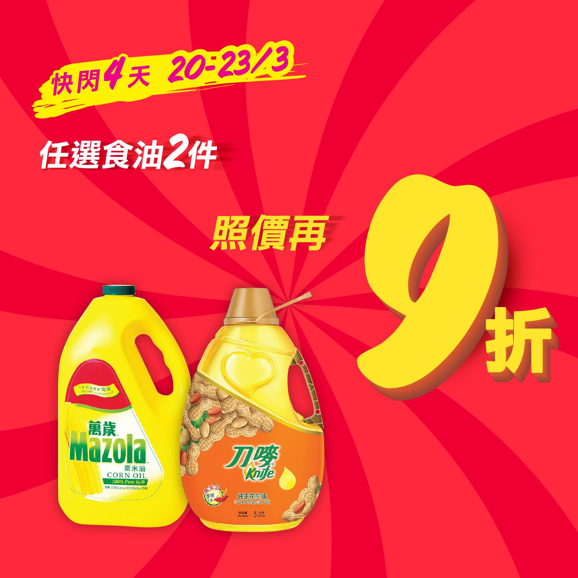 【惠康】任選食油2件照價再9折(即日至3月23日)