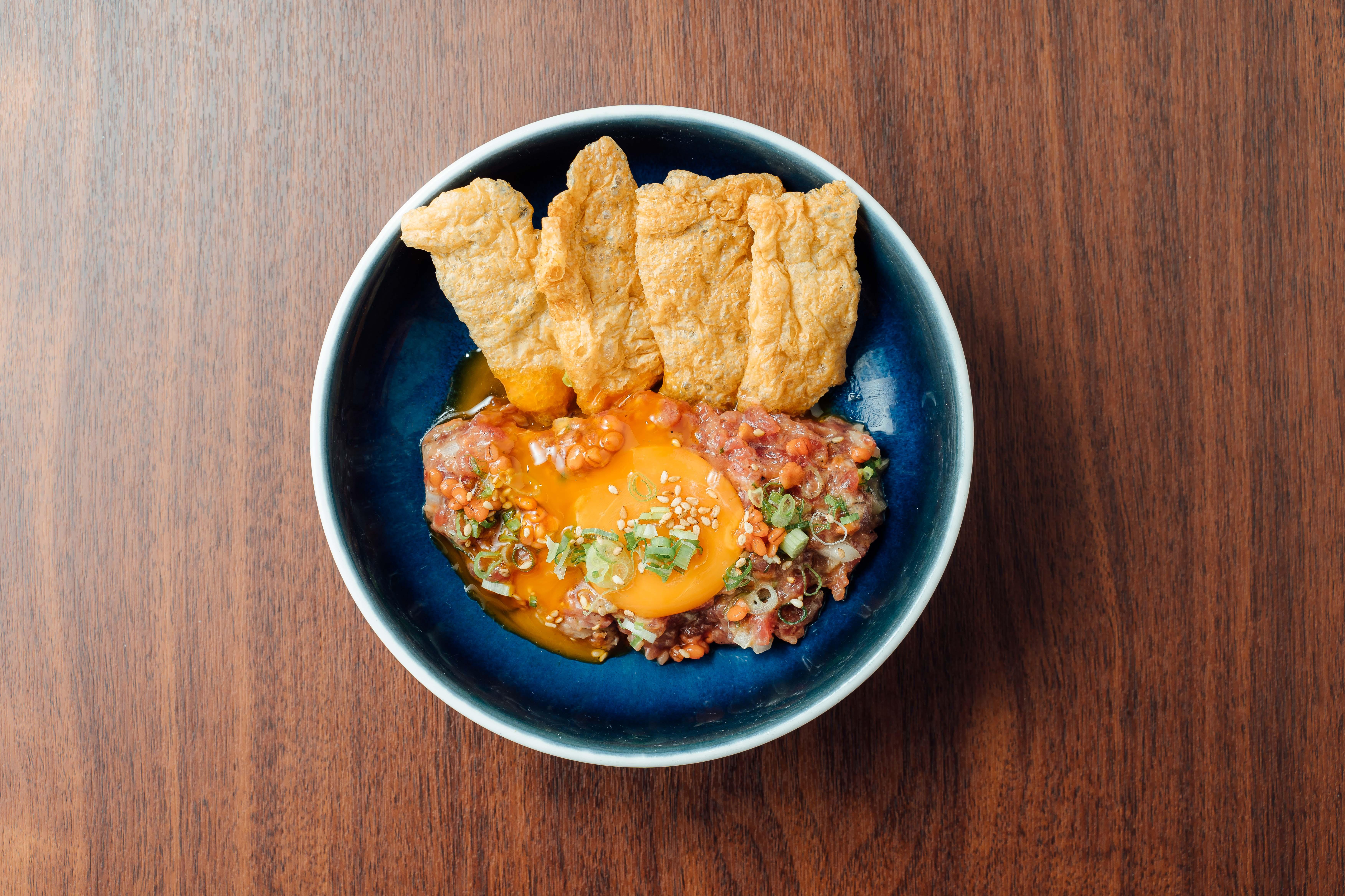 餐牌方面很有驚喜,餐廳選用多款來自日本的食材,炮製與眾不同的Fusion菜式,不只食材配搭特別,賣相擺盤亦有心思,食之前一定要先影相打卡。焦糖野菌布甸、牛肉他他、柚子牛油汁燒豬鞍、慢煮香煎乳鴿等都是招牌菜式,其中最推介黃油雞飯($268),加入本地煲仔飯元素,以炭燒形式炮製脆皮三黃雞,並用三款不同口味的時令雜菌與加入高湯的珍珠米同時煮熟後,再用雞油將飯煎至起焦,最後淋上特製香蔥豉油,充滿油香的黃油雞飯,份外齒頰留香!另外柚子牛油汁燒豬鞍($278)水準亦不錯,原塊豬鞍配柚子牛油汁,味道微甜美味,令人食慾大增,並以芹菜頭作為配菜,淋上蒜油酸汁,取代市面常見以馬鈴薯作配菜的常規,帶來別樣的新鮮感!由於每塊豬鞍厚道不一,廚師需精心控制火候,為食客帶來熟成度與肉汁豐盛的完美豬鞍。