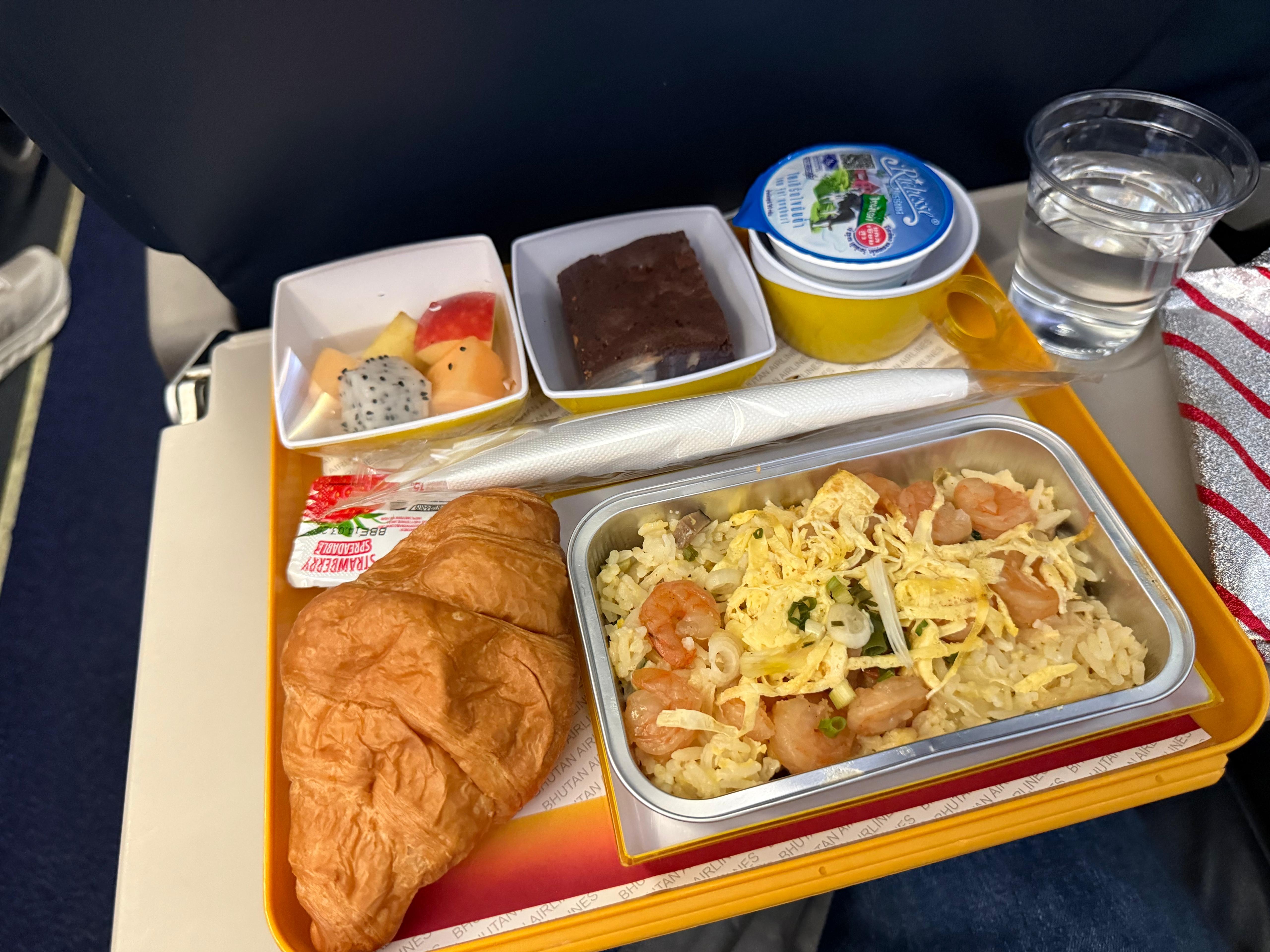 香港來往不丹線以波音737-700提供服務,去程約4小時15分鐘,一上飛機就有身穿不丹女性民旅服飾旗拉(Kira)的空服員出來迎接,飛機餐食物有齊餐包、主食、水果和甜品」,非常豐富。航班由清晨時份起飛,扣上2小時時差,到埗才早上八時多,大家可以把握時間開展這趟人生必去的不丹之旅。