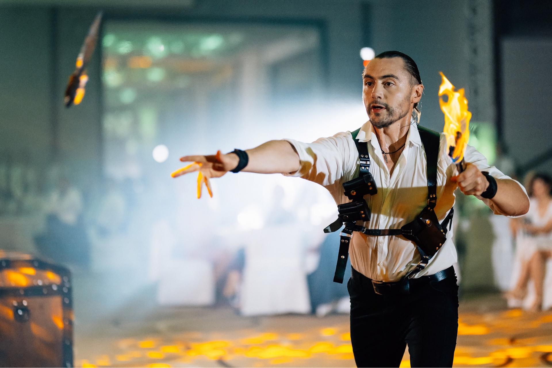 來自白俄羅斯飛刀拍檔安德烈和達麗亞的雙人投擲表演將震驚四座,他們會互相投擲 刀子,這是一個結合了信任和時機的表演,並曾於《全英一叮》躋身決賽。
