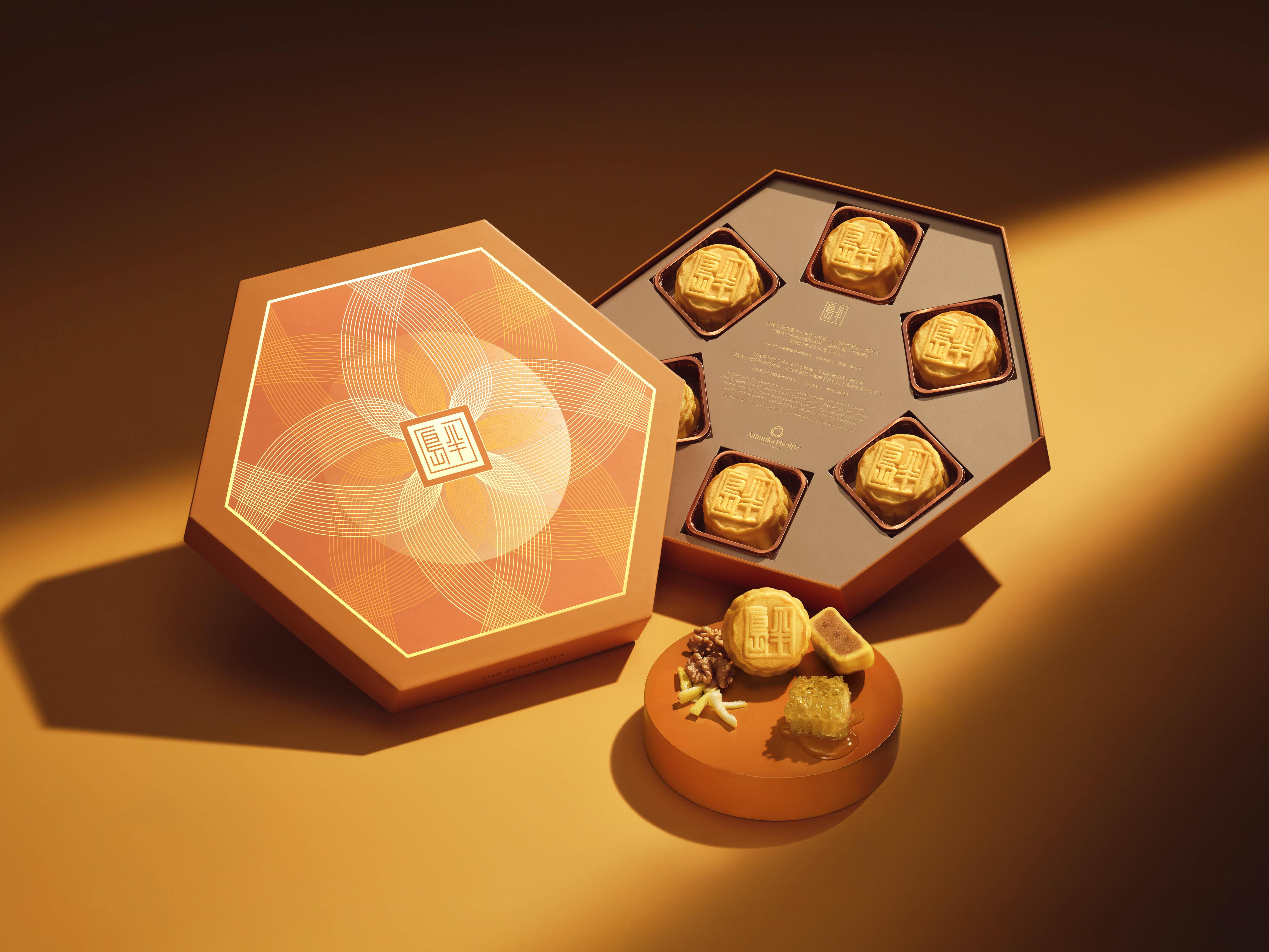 香港四季酒店與其米芝蓮二星餐廳龍景軒踏入20周年,中菜行政總廚陳恩德師傅與其經驗豐富的廚師團隊特別推出非凡新口味。全新武夷奇蘭桂花單黃白蓮蓉月餅(6件,HK$628),融合蘭花與桂花淡雅香氣,配濃郁白蓮蓉與鹹蛋黃,盡顯粵式糕點藝術。 經典招牌口味亦是必試,酥香崧子奶黃月餅(六件裝;HKD 628),展現絲滑蛋黃與香脆松子的完美結合。創新的子薑皮蛋月餅(六件裝;HKD 628),將傳統粵式「皮蛋酥」巧妙轉化為優雅月餅形態。