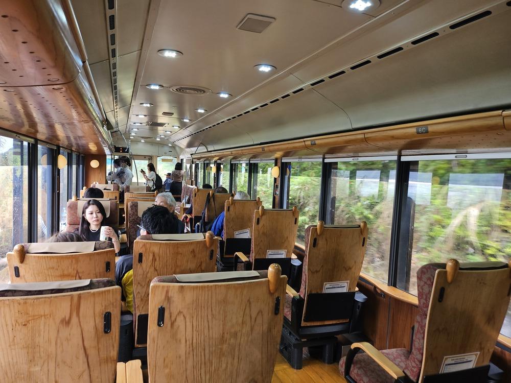 此列車連接「宮崎」站至「南鄉」站,全程約1.5小時,途中可一邊欣賞日南海岸及青島的壯麗海景外,一邊於車上享受飫肥的森林景致,其中北鄉到飫肥一段的超長火車隧道最為吸引!列車以宮崎的日向神話——海幸彦與山幸彦為主題,兩卡以飫肥杉打造的車廂分別「山幸」及「海幸」命名,全車設指定席及自由席,亦可於部分車站落車打卡。列車職員沿途會以手繪圖片講解神話故事,並會邀請乘客移步到車頭或車尾欣賞特別景致外,還設有模擬鵜戶神宮「運玉」的遊戲體驗,增添旅途趣味。想留念,可入手車獨家出售的限定紀念品與特色小食,乘客也可提前於網上預訂當地特產便當,邊吃邊感受宮崎的魅力。