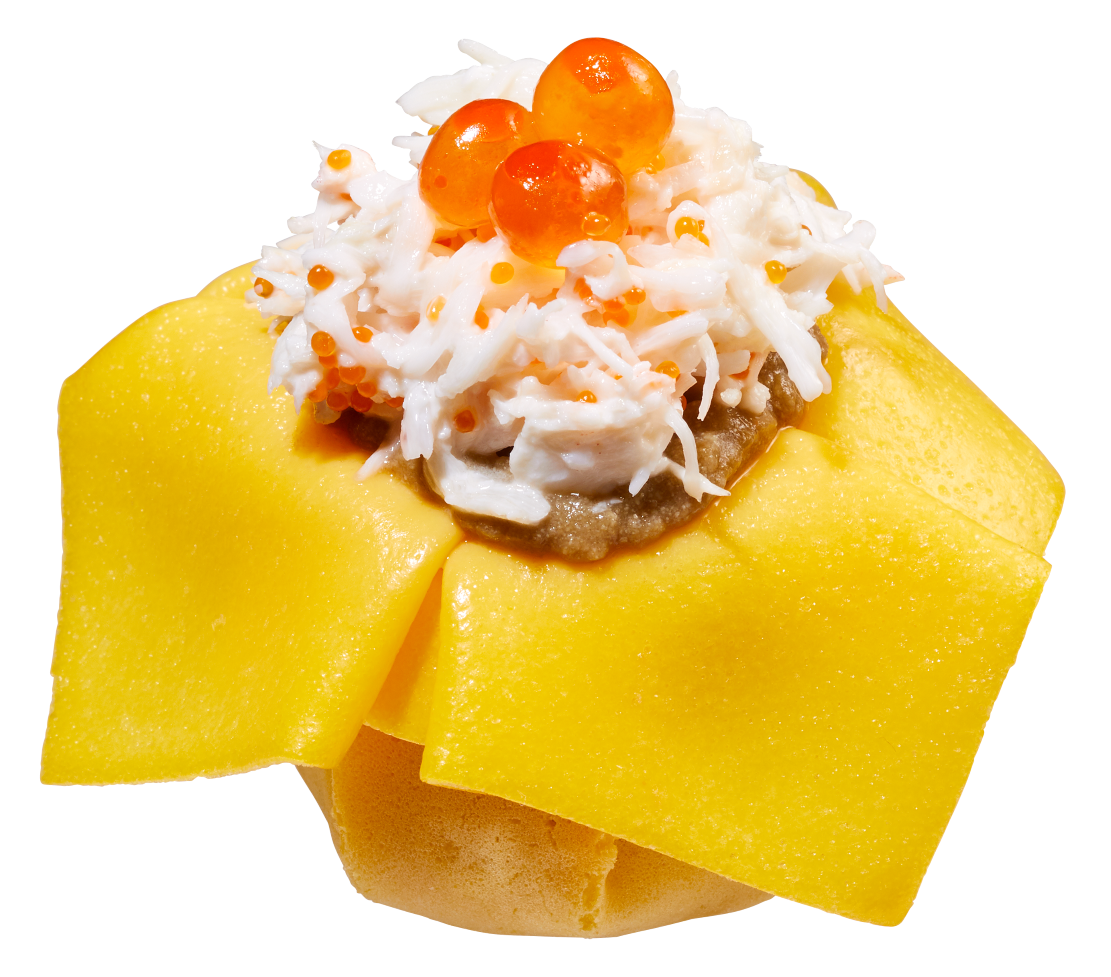 「茶巾壽司」以金黃色的薄燒蛋皮包裹著壽司醋飯,外型看起來像茶巾被包緊的模樣,色彩亮麗,賣相精緻,同時代表著吉祥寓意和幸福美好的祝願,一直深受日本人歡迎。今次壽司郎特別為大家帶來3款口味,分別是「鰻魚茶巾壽司」(港幣$17)、「松葉蟹沙律茶巾壽司」(港幣$22)、「鰻魚茶漬飯風味茶巾壽司」(港幣$25),三款食材組合都啱晒香港人口味,到時候記得mark定日子去試吓!
