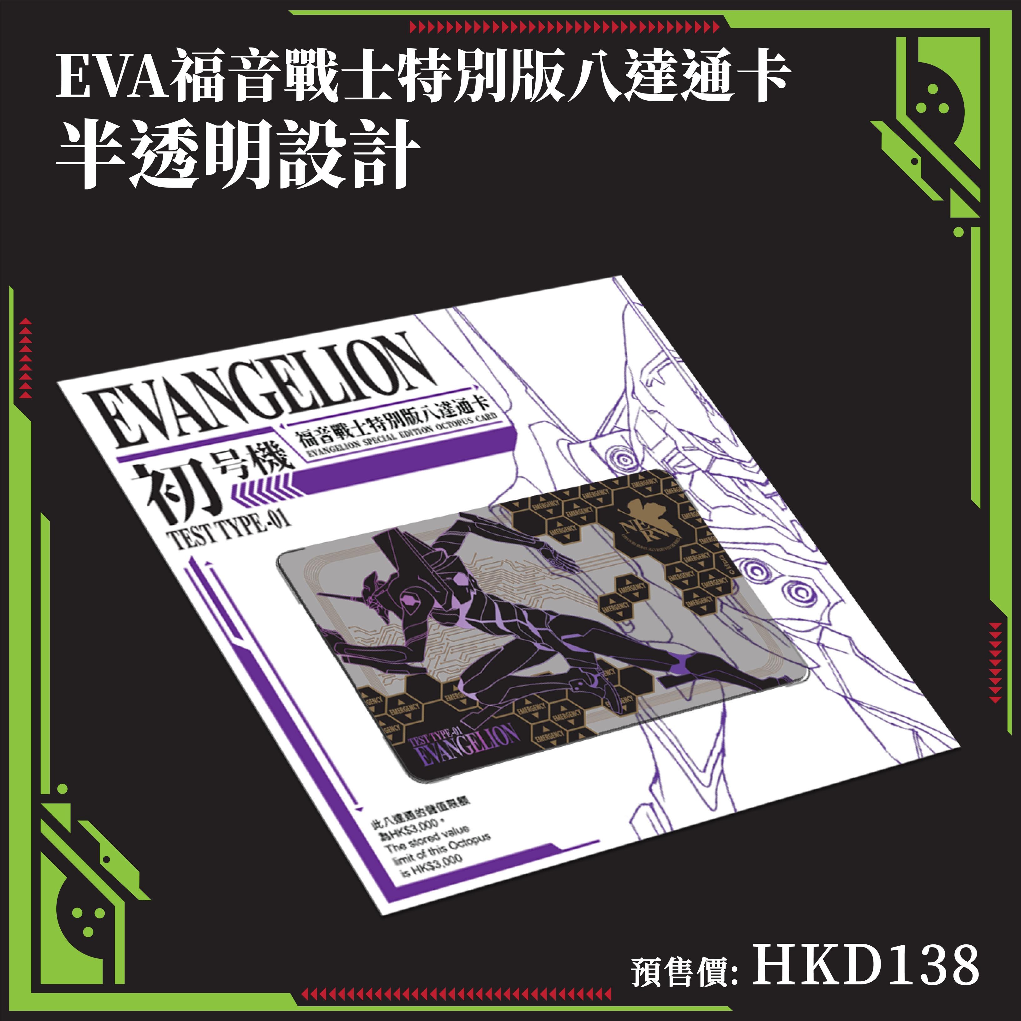 特別版八達通卡以型格迷幻紫初號機作主角,呈現其標誌性的外表及準備戰鬥的姿態,半透明設計可看到八達通卡內電子線路,盡顯科技感;限量紀念珍藏套裝版更全球限售1000套,每套均有獨立編號,並配有初號機盒面及AT力場半透明套,絕對是收藏之選。另有5張名信片,印有主要角色的劇場版經典劇照,角色包括碇真嗣、綾波麗、明日香、真希波及渚薰,粉絲定必收藏。