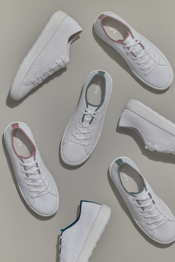 Fullup.首個系列Infinity,為經典白鞋注入全新風格,主打鞋款Infinity Cloud Sneaker鞋身相對寬鬆,以大部分再生聚酯纖維(rPet)製成的單層針織鞋面及其專利鞋底,舒服又持久。設計在腳踝後方和鞋跟位置,配上不同色調的幼線作點綴,並有粉綠色、深藍綠色和灰粉紅色可供選擇。另一款富玩味的雙色限量系列,亦採用環保無水染色技術,推出深藍色配深玫瑰色、深藍色配珊瑚橙幼線、米色配紅色幼線等色調。