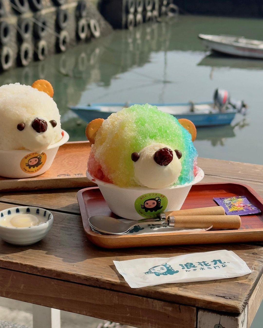 「浪花丸かき氷」主打日本沖繩風刨冰,在台灣共有四間分店,分別位於台北淡水、台北雙和、花蓮以及澎湖。招牌貨是賣相超可愛的「八重山彩熊君」,店家將刨冰製成小熊造型,再淋上七彩水果糖漿,配上蒟蒻果凍、白玉丸子、雲呢拿雪糕、爆炸糖等等,整體充滿夏日風情!另一款「北海白熊君」亦很受歡迎,主要配料換上煉乳、白玉丸子和萬丹紅豆,味道香甜,白雪雪的小熊更可愛!