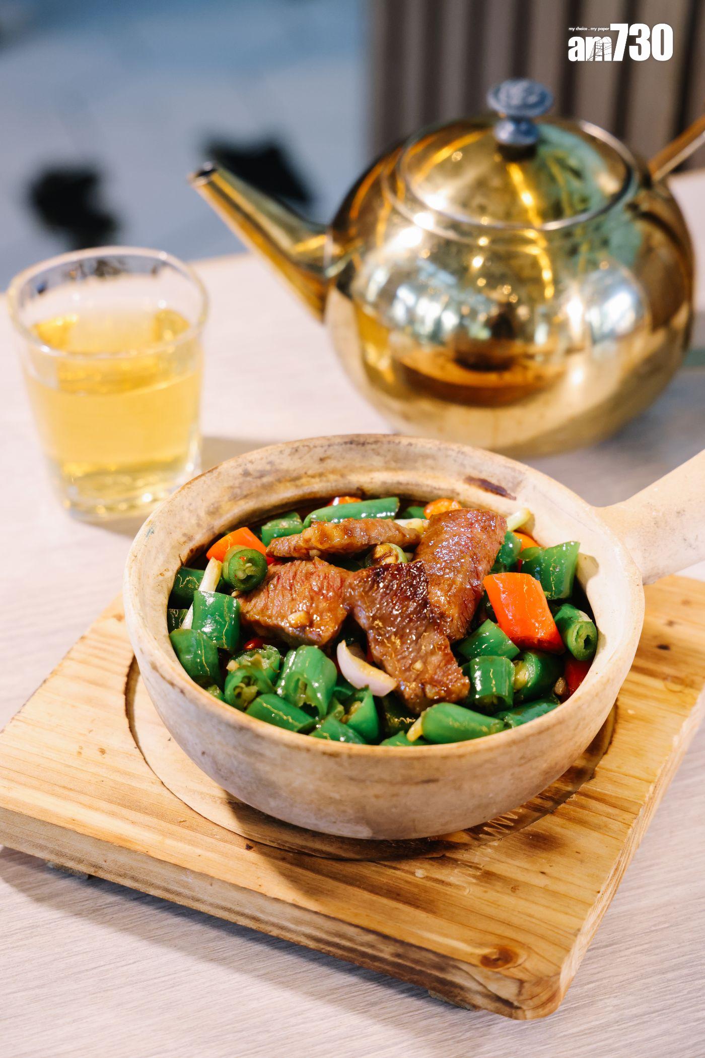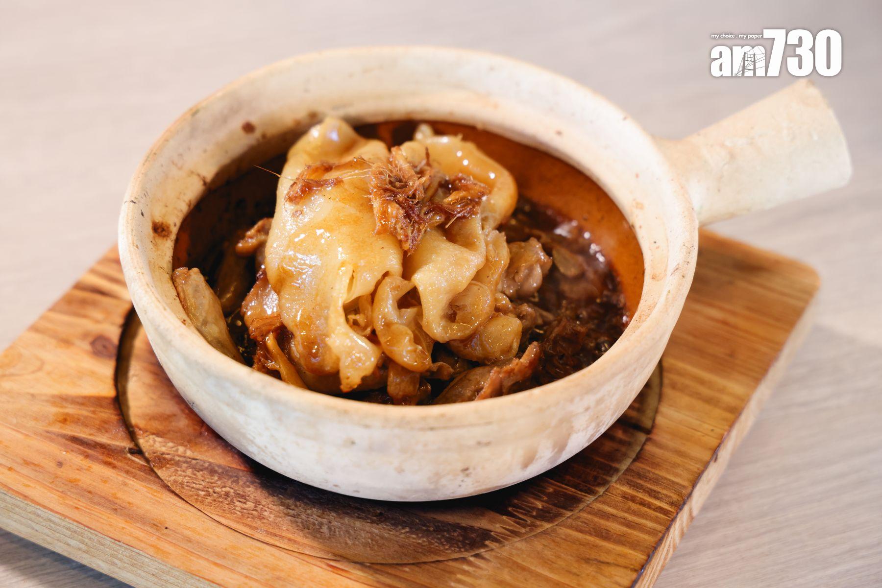 煲仔菜推介啫啫黃皮豬膶排骨煲,新鮮黃沙豬膶由專人選購,本地豬農每日下午3時劏豬後就會運來,以乾蔥頭、炸蒜子、紫洋蔥爆香靚腩排,加入黃皮乾與金不換帶出清新芳香,中和油膩。辣鮮露胡椒虎蝦配煎腸粉煲也香惹得很,五頭越南虎蝦配以日式燒汁和辣醬油煎香,強烈的香味主要來自黑胡椒與藤椒,加上辣椒和蔥襯托,墊底的腸粉吸收了所有香味的精髓。
