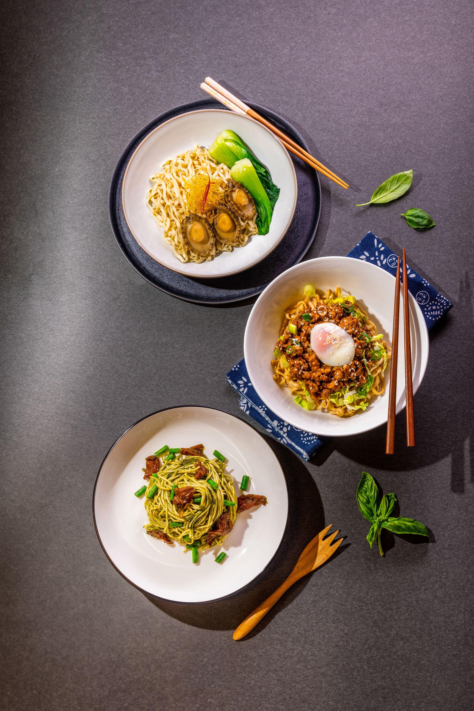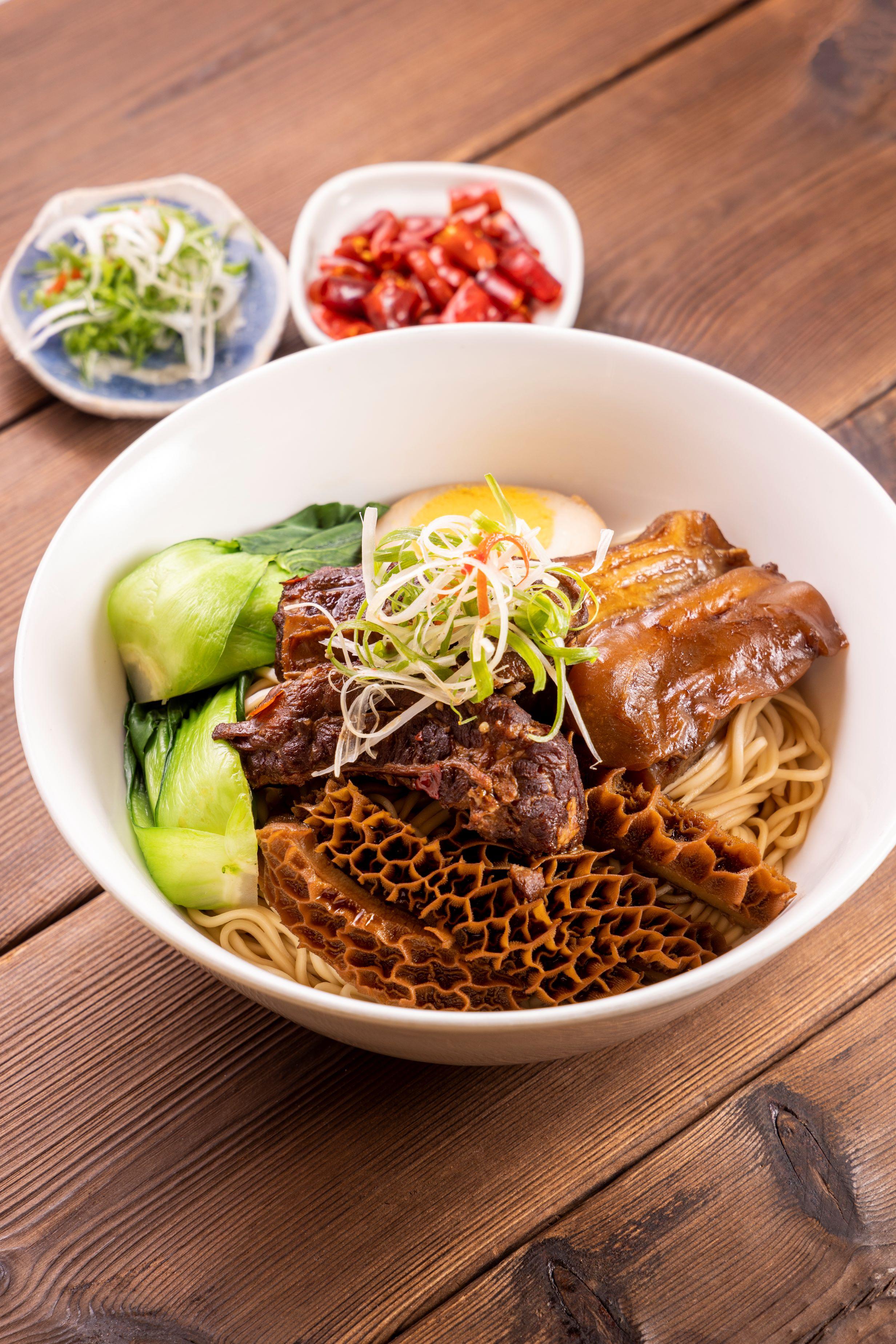今次KiKi麵店希慎分店沿用以往的木系文青風格,並首次加入茶舍的概念,既可享受舒適的用餐環境,亦有高質台式茶飲供應。重點推介三款⽶芝蓮限定餐單,分別為溫泉蛋肉味噌拌葱油太麵、日式慢煮磯燒鮑魚拌麵及日曬蕃茄乾拌自家製意式香草汁燴麵。溫泉蛋肉味噌拌葱油太麵 ($128),賣相吸引,由日籍米芝蓮一星行政總廚小西充設計,特別用上KiKi麵招牌葱油太麵作為麵底,麵條彈牙有嚼勁,配以濃郁赤味噌、醬油肉燥以及流心溫泉蛋,攪拌後香濃惹味,愈食愈開胃!另外日式慢煮磯燒鮑魚拌麵($158)亦有睇頭,每碗麵配上三隻磯燒鮑魚,鮑魚用上等澳洲貨,以磯燒汁熬煮8小時,香甜入味,再將鮑魚湯汁拌入KiKi麵,整體鮮味滿分!日曬蕃茄乾拌自家製意式香草汁燴麵($108)同樣有創意,意大利籍行政總廚Valentino Ugolini特意用意大利傳統手法製作自家製青醬,選用使用羅勒、松子仁、芝士、橄欖油、黑椒等多項食材,用料扎實,再加入由意大利直送香港的日曬油蕃茄乾及法邊豆與KiKi麵一同拌勻,入口清新。如果喜歡啖啖肉,不妨試埋經典牛三寶拌麵(可選飯)($118),使用秘製台灣傳統風味滷汁熬煮牛肋條、牛筋及牛肚,KiKi麵與滷汁配搭出色,濃郁好味道。