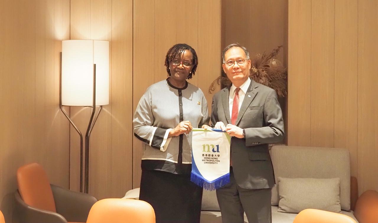 津巴布韋外交與國際貿易部部長阿蒙·穆爾維拉(Professor Dr. Amon Murwira)率領的代表團,於今天到訪香港都會大學李嘉誠專業進修學院 (HKMU LiPACE)。隨行出席的成員包括津巴布韋駐中國大使阿比蓋爾·紹尼瓦(Abigail Shoniwa)以及津巴布韋駐香港總領事Ellias Mutamba先生。代表團由香港都會大學校長林群聲教授、學術副校長關清平教授以及李嘉誠專業進修學院院長曾德源博士接待。此次來訪的一大亮點是參觀香港都會大學李嘉誠專業進修學院位於葵興校園內設立的津巴布韋區,該區以津巴布韋維多利亞瀑布的營地為設計原型,並展示了聯合國教科文組織世界遺產「大津巴布韋遺址」(Great Zimbabwe)。