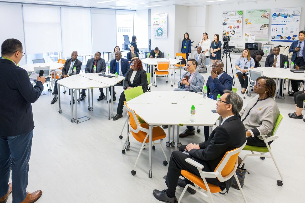 津巴布韋外交與國際貿易部部長阿蒙·穆爾維拉(Professor Dr. Amon Murwira)(右六) 率領代表團,於今天到訪香港都會大學李嘉誠專業進修學院。
