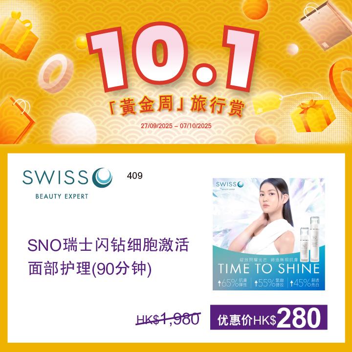 SNO 瑞士閃鑽細胞激活面部護理 (90 分鐘) 原價HK$1,980 優惠價HK$280