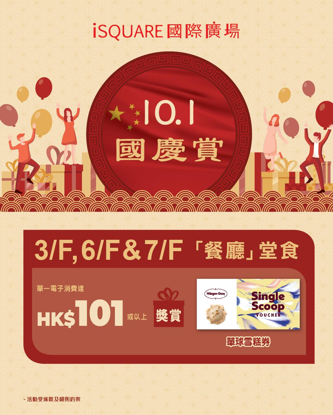 顧客於換領期內蒞臨iSQUARE國際廣場3樓、6樓、7樓「餐廳」堂食,以電子貨幣單一消費達HK$101或以上,並成為iCLUB會員及出示電子會員卡,即有機會換領Haagen-Dazs單球雪糕禮券乙張。