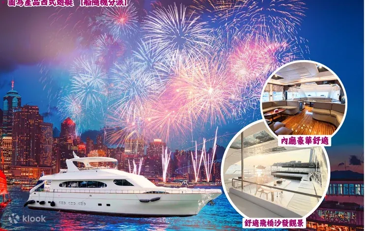 全程3小時煙花遊艇之旅,頂層設360度全景觀景台,近距離觀賞壯觀的煙花表演。可選中式或西式遊艇,西式遊艇早鳥優惠低至$1,249。盡情享用精選的西式晚餐及無限量的啤酒、輕食和軟性飲料。