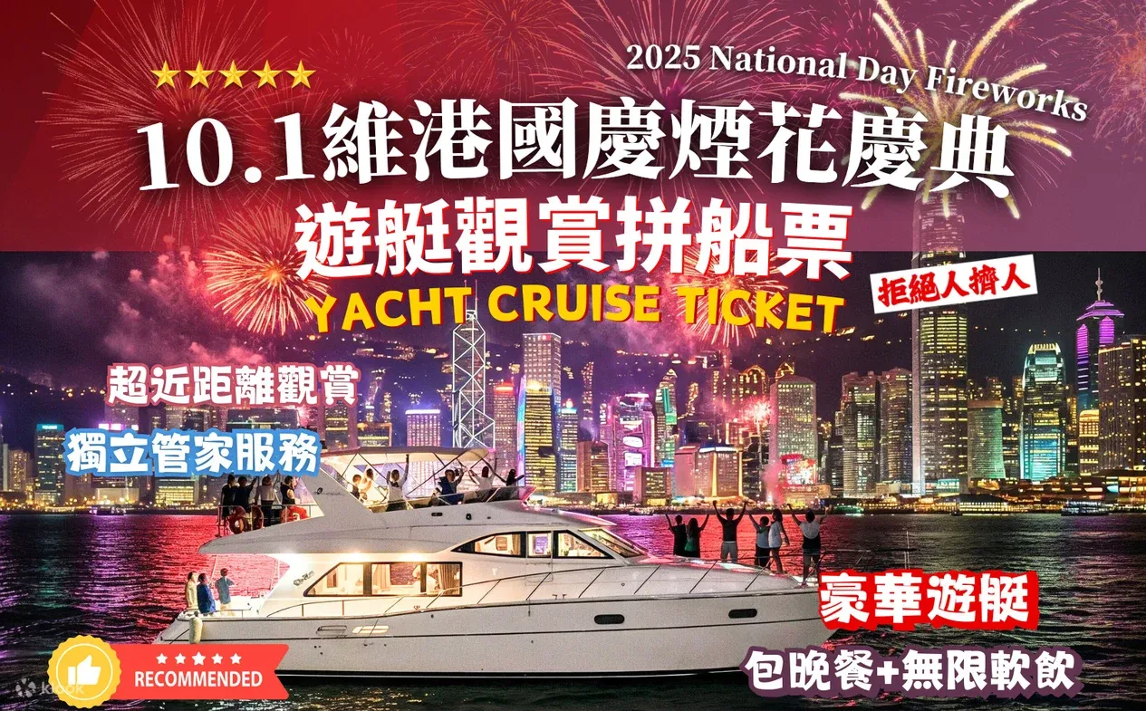 國慶煙花2025遊船推介|維港煙花匯演豪華遊艇船 83折