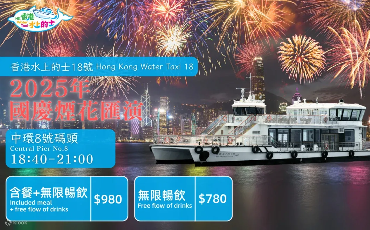 國慶煙花2025遊船推介|香港水上的士·國慶煙花匯演 多艘船隻提供預約