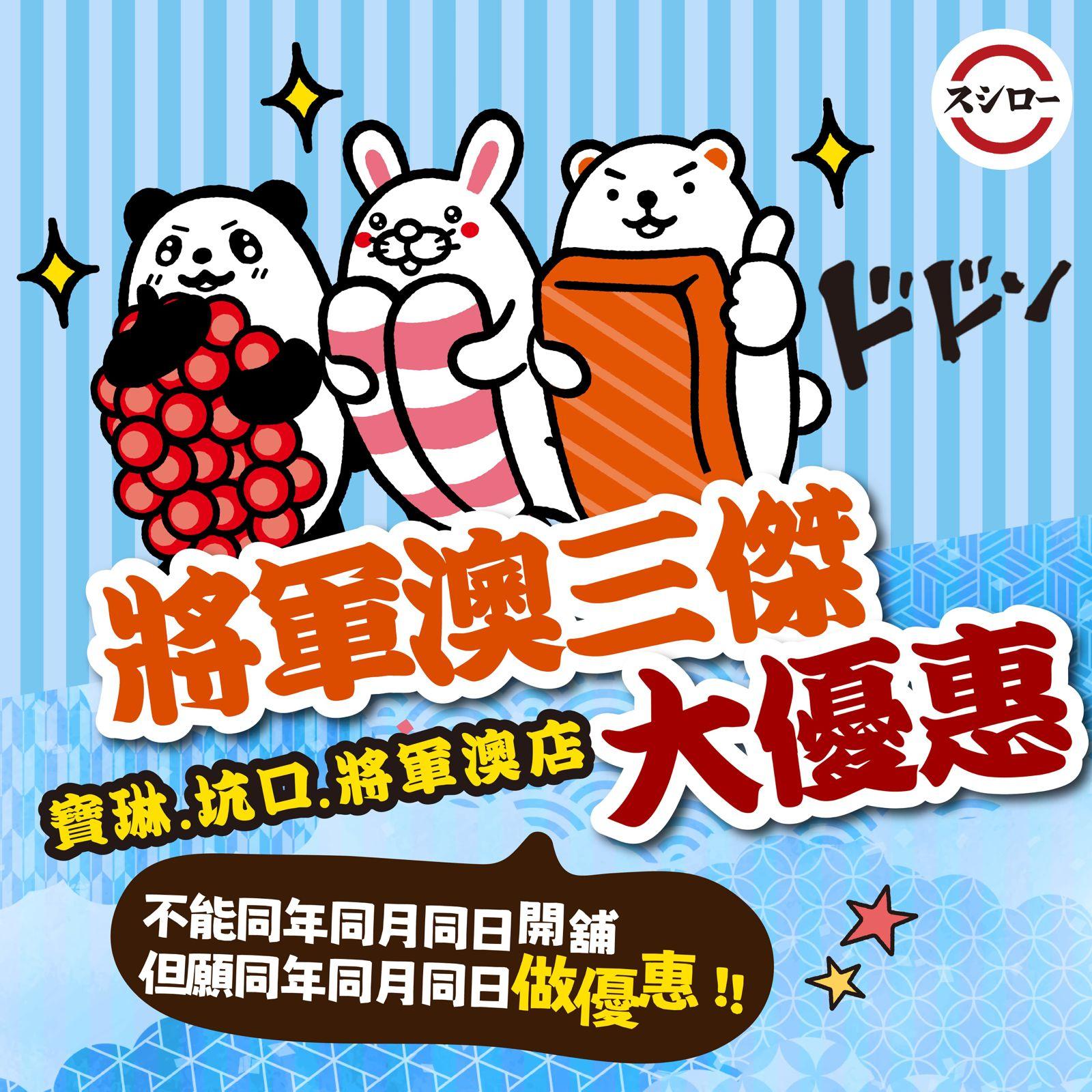 壽司郎將軍澳區3間分店限定優惠 人氣壽司美食低至$10起!堂食滿額免費送精品