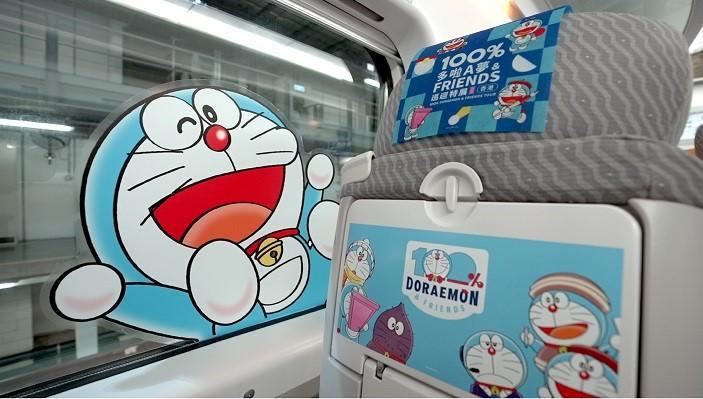 港鐵公司與《100%多啦A夢 & FRIENDS》巡迴展覽的主辦單位AllRightsReserved,推出首列粵港跨境高鐵《100%多啦A夢 & FRIENDS》主題列車,由7月27日起接載旅客往來香港、深圳和廣州,至8月18日於指定日子及班次行走。首班多啦A夢高鐵列車將於7月27日周六早上8時23分開出,前往廣州南站。高鐵多啦A夢主題列車集合超過50個特別造型佈置,讓你沉浸式被多啦A夢包圍,無論在車外車內不同地方都會找到特別造型的多啦A夢蹤影!乘客在特定日子及班次登車時,可於西九龍站領取印有多啦A夢圖案的座位頭枕布。
