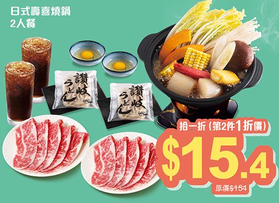 即日起於大家樂網店 eeatCDC.com或透過 Club 100 3.0手機程式登入eatCDC.com,開賣多款火鍋二人餐券!超價必買有五款超人氣火鍋二人餐券,凡訂購指定二人餐券兩套,第二件即享1折優惠,每張訂單最多限購2件,折扣以最低價格之產品計算。當中包括人氣之選「 打堅爐 」二人餐券、「日式壽喜燒鍋」二人餐券、「韓式泡菜辛辣鍋 」二人餐券以及「穀飼肥牛和牛鍋」二人餐券等,以「日式壽喜燒鍋 」二人餐為例,餐券$154,可$15加購「打堅爐」二人餐,即以1折價錢便可以享用。