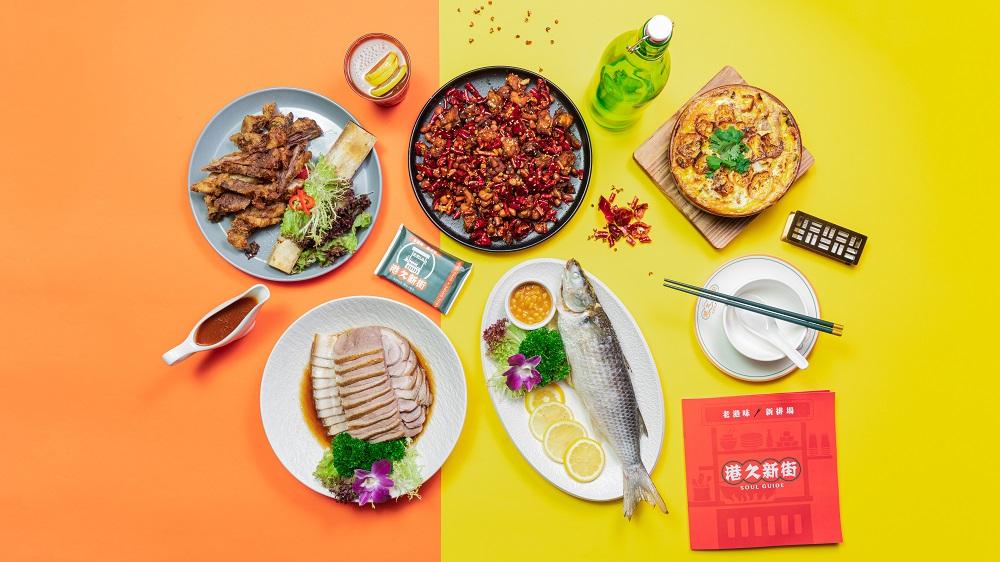 「港久新街」店名中文是取自「港九新界」的諧音,寓意餐廳搜羅了全港各處的特色美食;而英文名字Soul Guide取自「掃街」的諧音,宣揚香港不同的飲食文化。