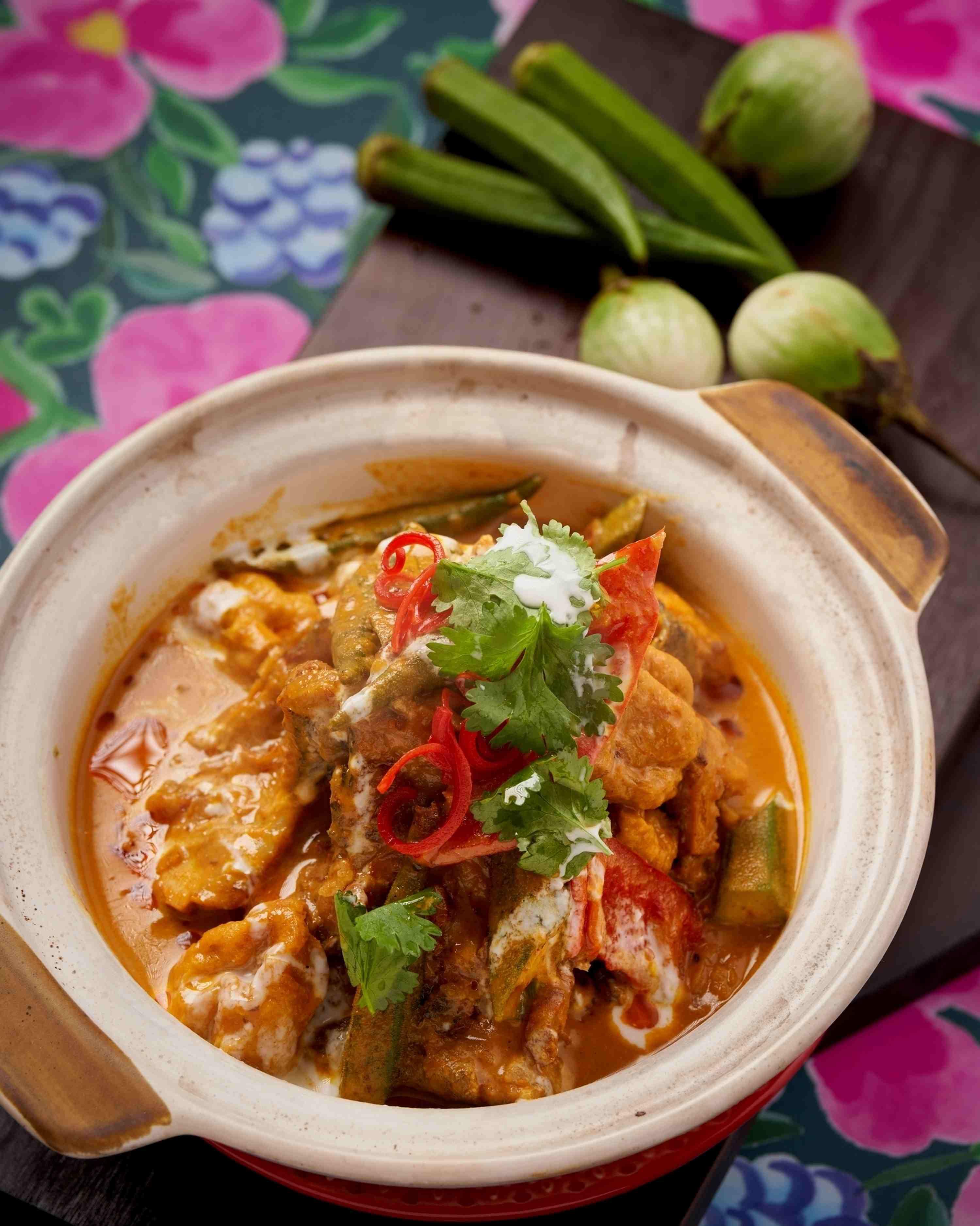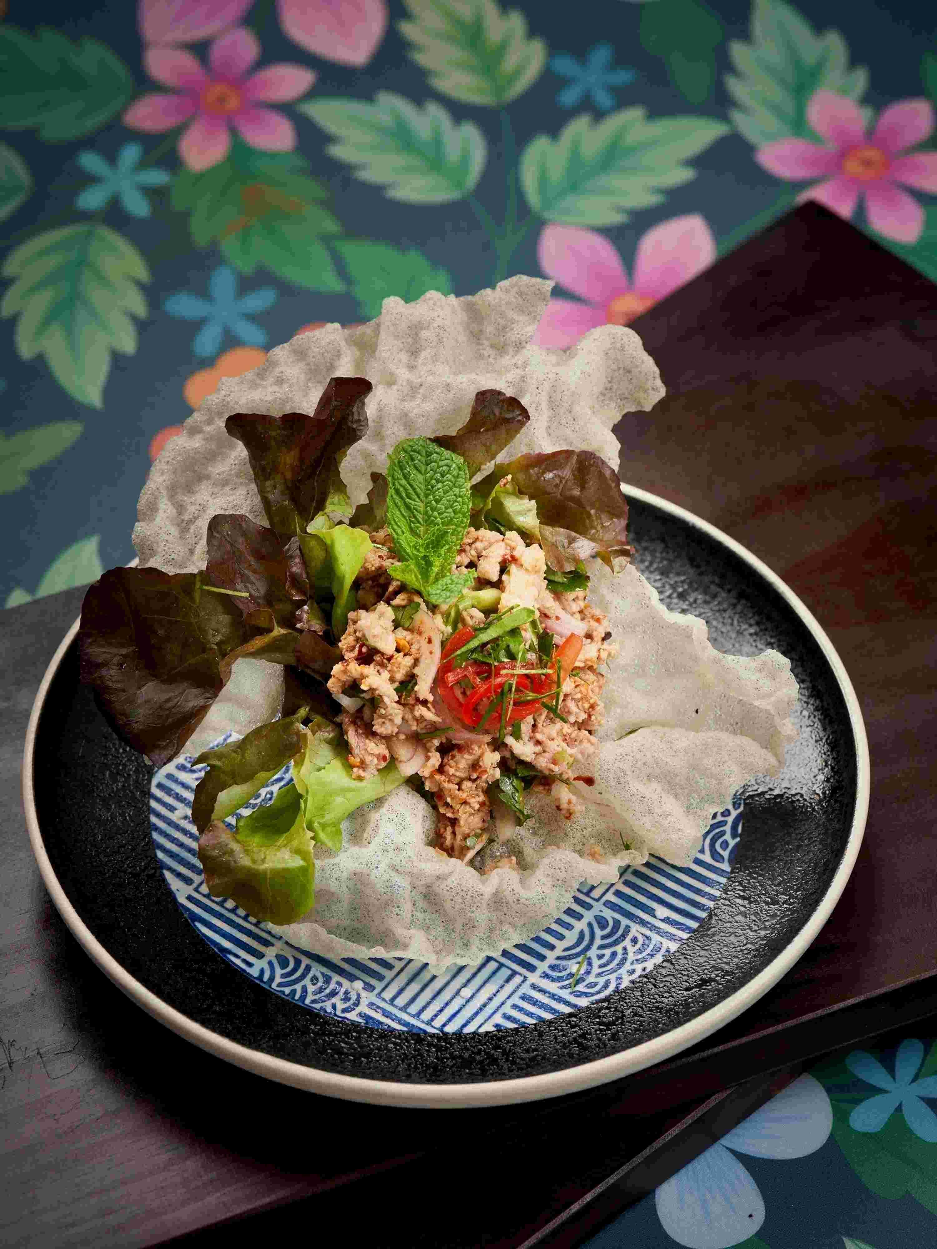 餐廳的特式菜餚混合了多款芳香撲鼻的食材及調味,味道細膩,五味紛陳;並融合 傳統做法與新穎創意,不少似曾相識的味道都迎來嶄新演繹。前菜羅惹水果沙律($65)的醬汁由羅望子、馬拉盞、黑醬油、蝦腦醬等自家調製,加入蓮霧、菠蘿、沙葛、青瓜等,灑上花生碎,鹹香中帶清爽。泰式鴨肉生菜包($48/件)先將鴨肉以泰國芫茜、辣椒、魚露等炒香,特別加入米碎,以炸脆的越南米紙及生菜包起來吃,一口一件,鮮爽之餘多添一份脆口。