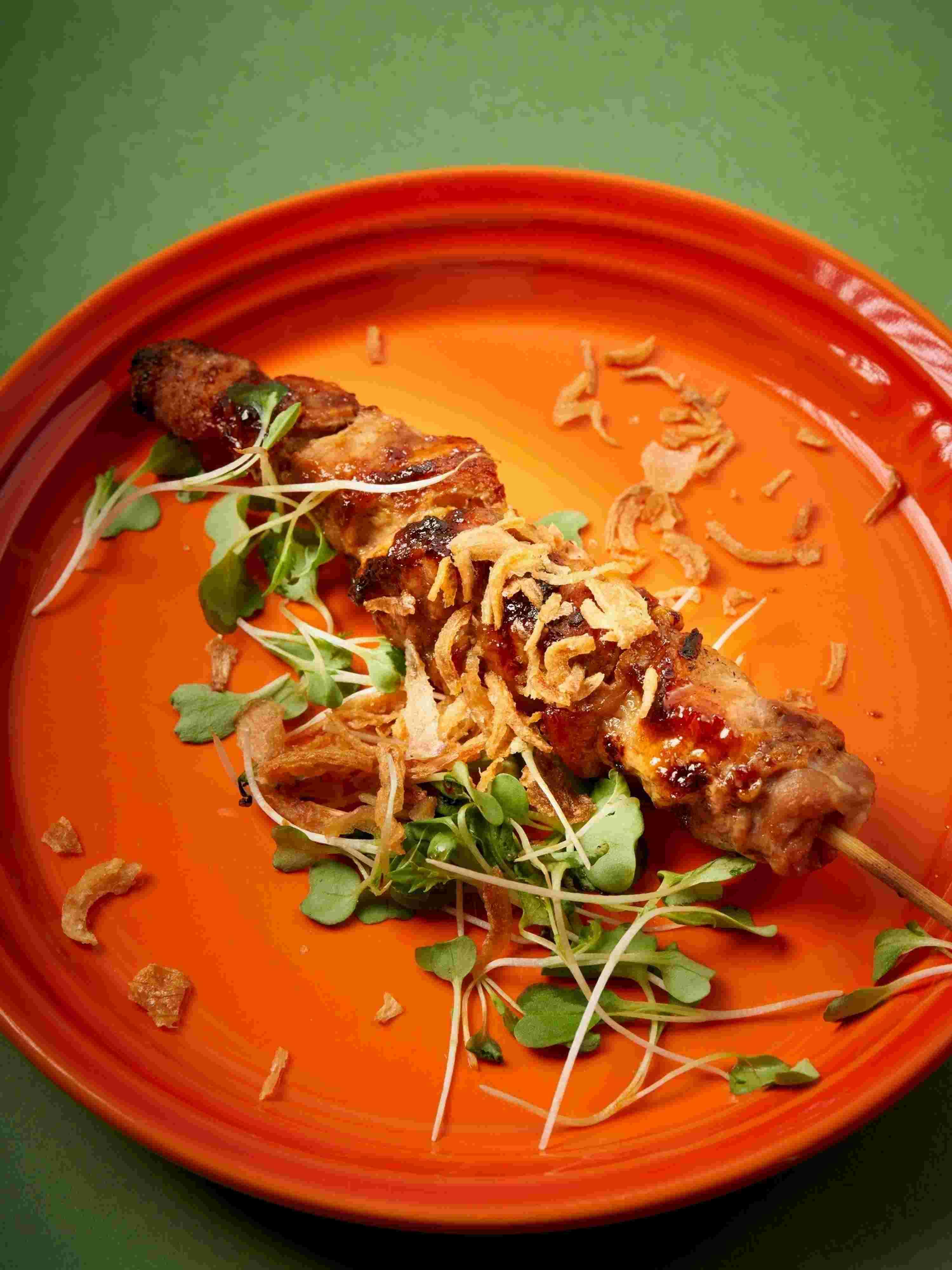 多款串燒及燒烤菜式的醬汁都採用了逾10-20款香草及香料巧製。烤豬腩肉配辣蝦醬($20/串),燒好後搽上以辣椒、乾蔥、蒜頭及番茄等慢煮 45 分鐘,再以印尼 ABC 甜醬油調味的醬料再燒,以上步驟重覆兩次頗花心機,入口肥瘦適中,香口惹味。素食亦有串燒秋葵、粟米及菠蘿等提供,亦可選擇配以牛油或以泰國啤酒及洋蔥提香的是拉差(Siracha)牛油去燒,原味或香辣任君選擇。