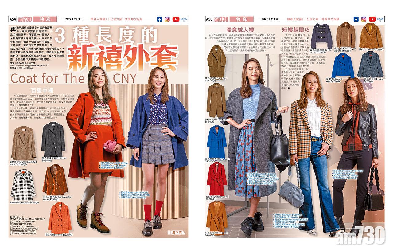 再過兩周就迎接提早來臨的農曆新年,過年前買新衫的習俗,不需花時間思考,只要揀一件見得人、又能夠包裹全身的大褸,已經可以在春節期間,襯出一個體面時尚造型,省時方便。剪裁別致的禦寒外套、剪裁各異的大褸,均能夠演繹出不同時尚姿彩。本季外套花紋不乏經典紋理款式,顏色除了永恆的黑色外,大地色系與sonic blue,被不少品牌推崇,今個新禧不用獨孤一味紅噹噹。