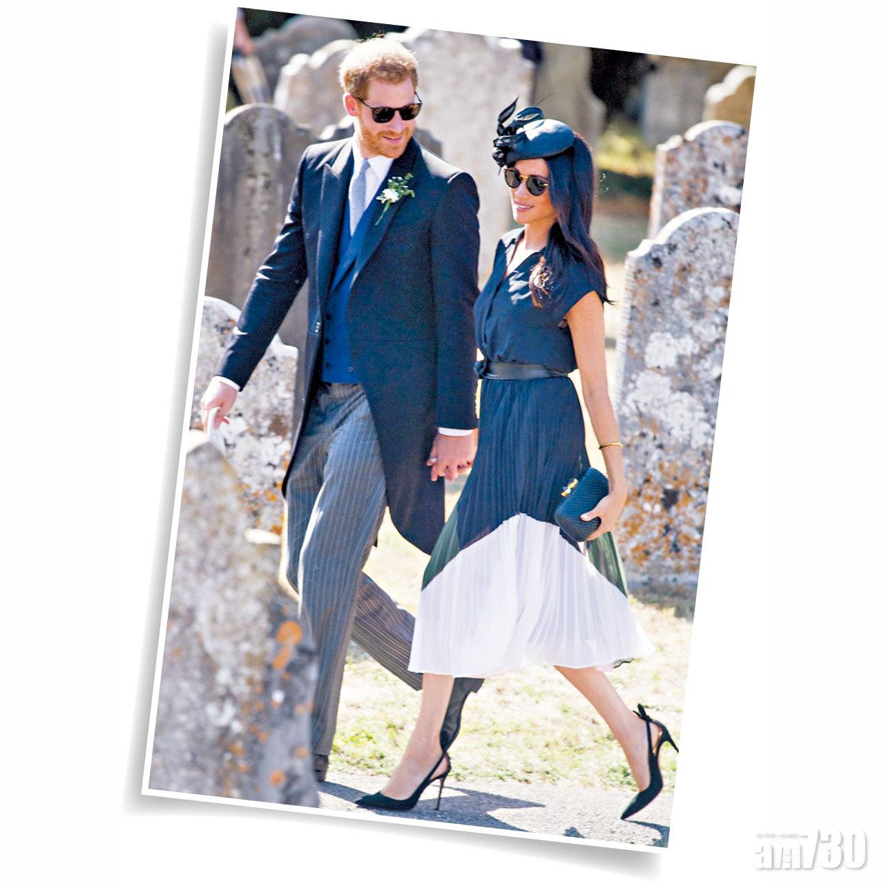 早前梅根的揮霍作風成為傳媒焦點,大家必定好奇今年生日她會以甚麼服飾亮相呢?梅根當日穿上一件價值328美元(約2,558港元)的CLUB MONACO深藍色短袖連身裙,感覺溫婉端莊,白、綠、藍拼色百褶裙,是梅根喜愛的低調色彩,她束上腰帶,突顯身材,配搭皇室御用帽飾設計師Philip Treacy黑色禮帽,及她至愛的Aquazzura蝴蝶結尖頭高跟鞋,在人群中十分耀眼。