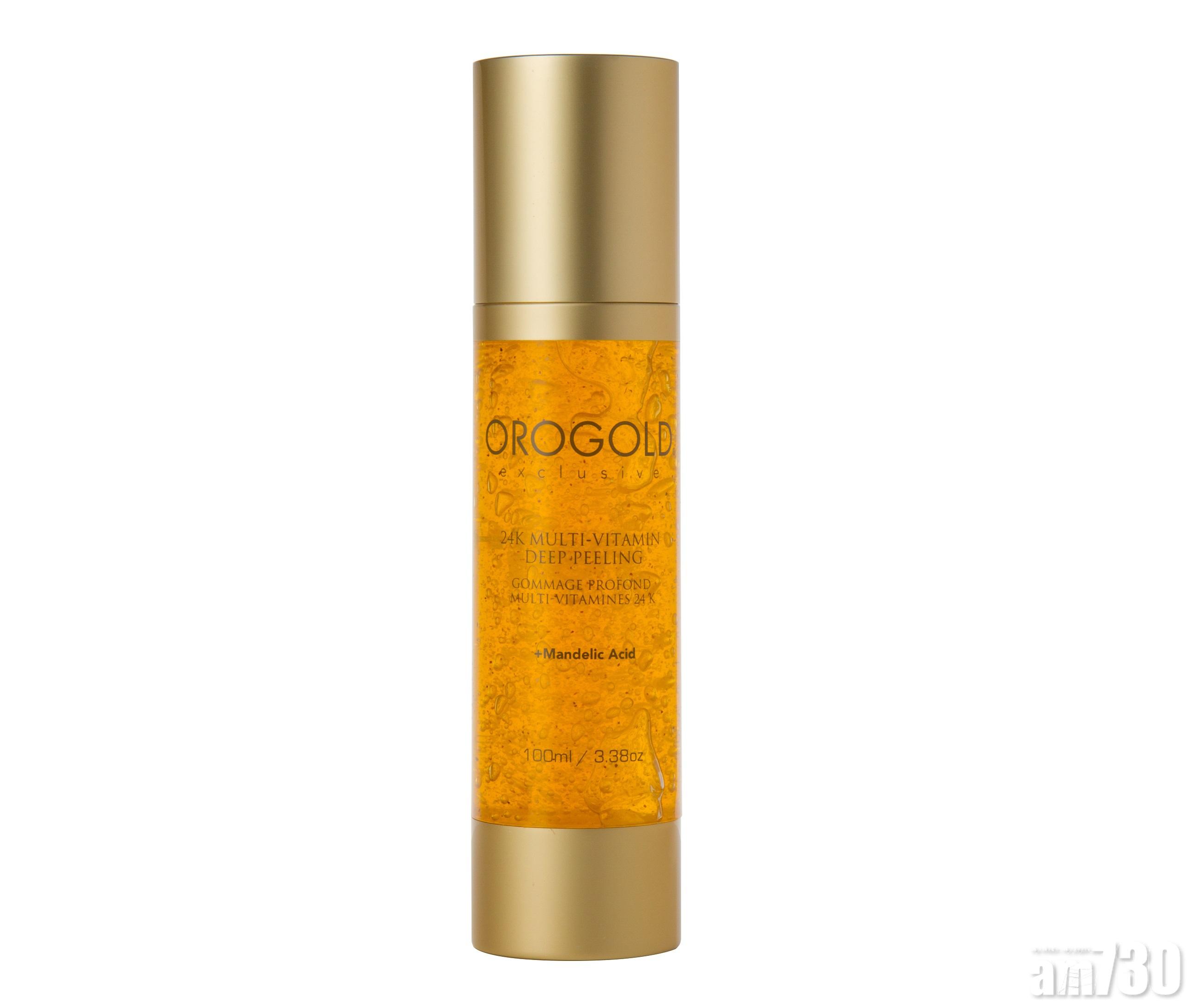 24K純金多元修護去角質啫喱 $1,380/100ml 主要成份包括維他命、抗氧化劑及24K純金,能去除死皮及清走臉上污垢,深層清潔,重現年輕肌膚,讓肌膚重現活力及明亮的光彩。