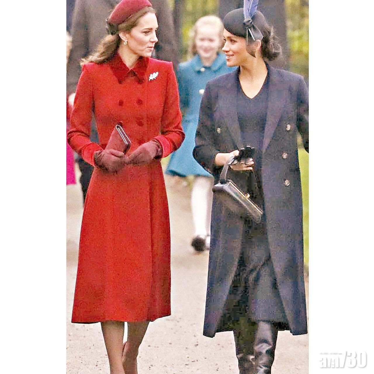 英國皇室成員必定在聖誕日與女王進行家族聚會,再出來與市民及傳媒近距離接觸。今年亦是梅根正式成為皇家媳婦後首個聖誕節,挺著7個月巨肚的梅根,與凱特王妃再度同台,造型又再成為討論熱話。