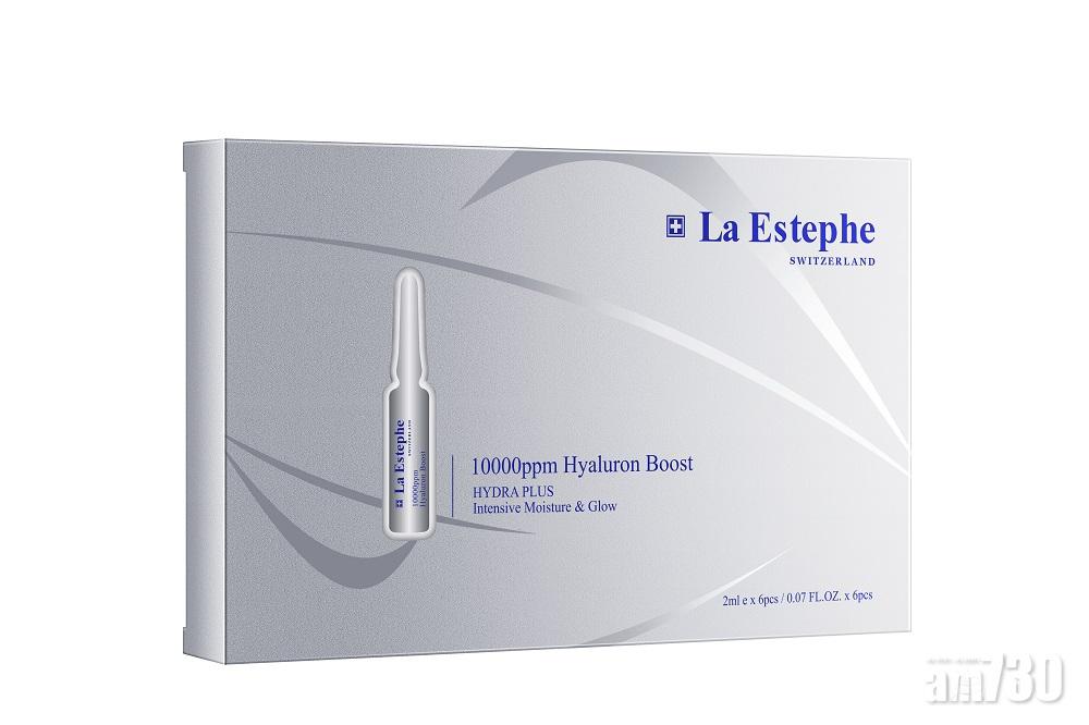 全新推出的La Estephe 10,000ppm透明質酸水光活膚療程,可在短短6天為肌膚帶來顯著的修復補水效果,一次過吸水、補水和儲水,加上配方蘊含超高濃度的大小透明質酸分子,帶來3重保濕力量,幫助滲透至肌膚底層,達到強化和修復效果。此外,成分之一的CM Glucan Granulate™葡聚醣衍生物,能在肌膚表面形成水分子網膜,幫助鎖住水分,而多種胜肽成分則有助促進肌膚自我修復能力,達到淡化皺紋功效。