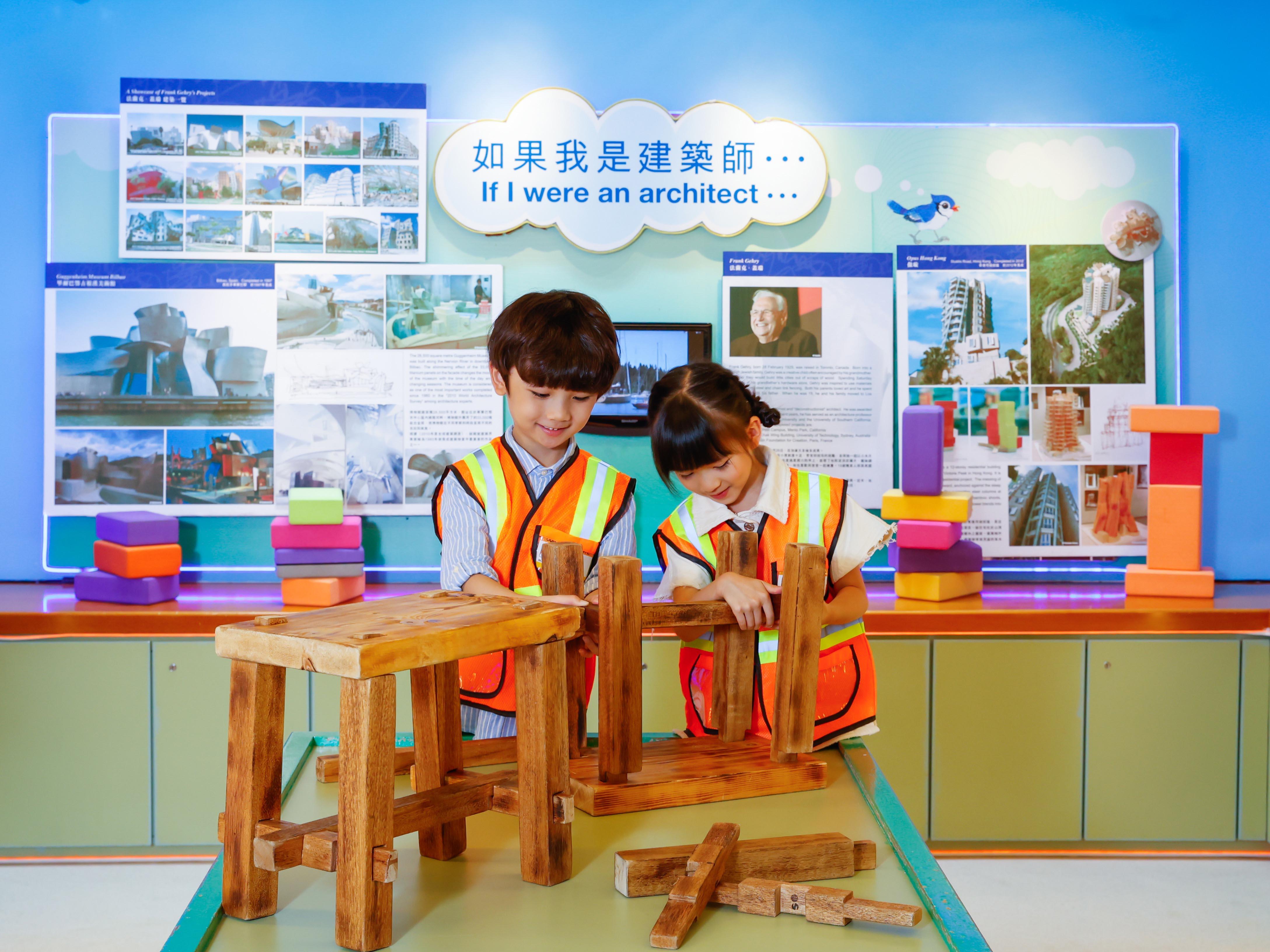 建築師除了懂得畫則,還要認識建築相關的機械及原理。 小學員會穿上安全帽及反光背心等建築主題服飾,置身於 建築工地場景,學習挖掘機的操作,模擬挖動地盤上的建 築材料;另亦會探索基建結構力學,親手拼砌木作組件,以了解古時傳統的榫卯建造窮門,融會貫通,可培養小朋友的邏輯思維及手眼協調力。所需遊戲代幣:6
