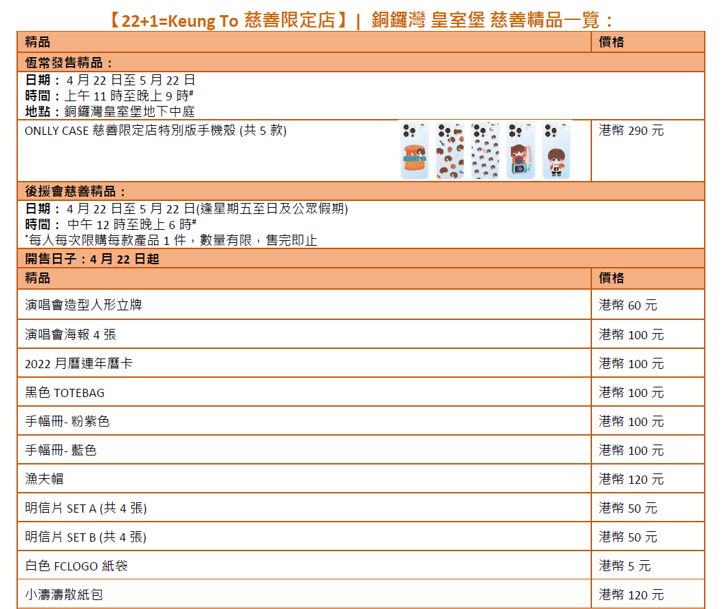銅鑼灣皇室堡【22+1=Keung To慈善限定店】開放詳情: